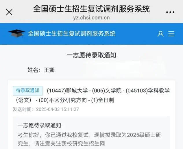本科阶段,王娜并未停下脚步。在实习和理论学习中,她深刻认识到,教育行业对教师的专业素养要求越来越高,于是她萌生了考研的想法。备考期间,她合理规划时间,利用网络资源汲取经验,注重劳逸结合,始终保持积极的心态。功夫不负有心人,2025年,她成功被聊城大学录取,成为一名硕士研究生,实现了从专科到研究生的华丽转身。