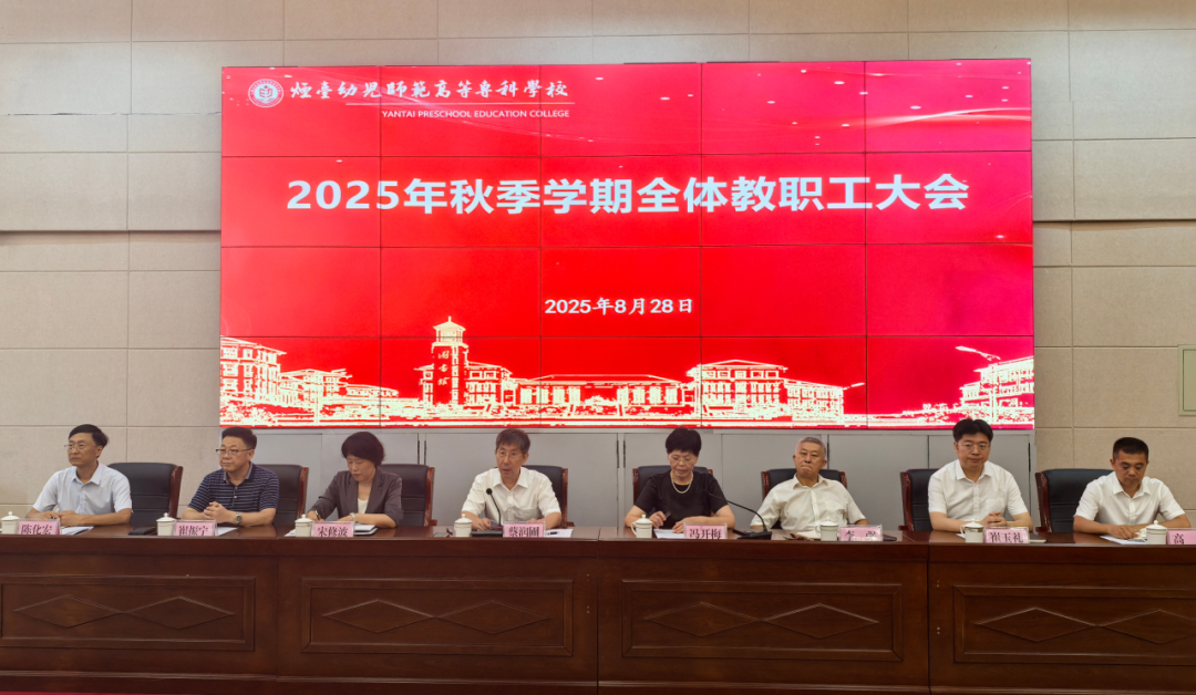 8月28日,烟台幼儿师范高等专科学校2025年秋季学期全体教职工大会在学术报告厅召开。会议由党委书记蔡润圃主持,全体教职工齐聚一堂,以饱满热情与昂扬斗志迎接新学期到来。