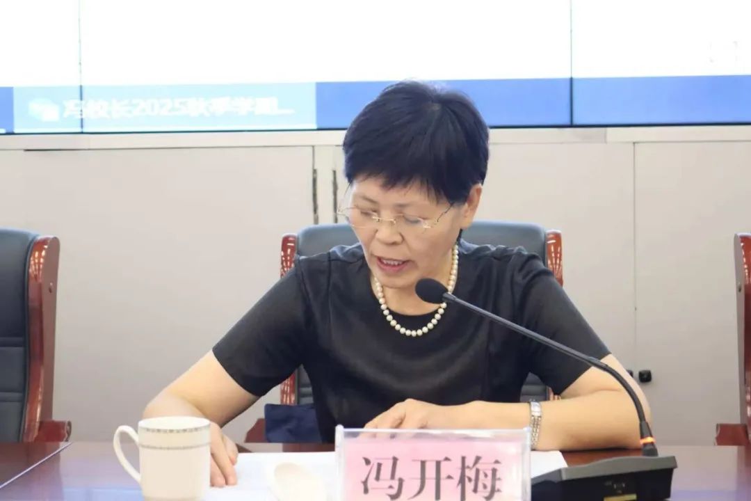 党委副书记、校长冯开梅对上学期工作进行总结,并部署新学期任务。她指出,上学期全校工作平稳推进,部分领域实现突破,呈现“稳中有进、进中向好”态势:一是强化党的全面领导,以党建引领育人实践,构建良好育人新生态;二是锚定立德树人根本任务,育人质量与成效持续提升;三是深化教科研改革,社会服务能力显著增强;四是多维度优化教师队伍,结构更趋合理、素养稳步攀升;五是建章立制与服务优化并举,完善内部治理,提升保障服务效能。