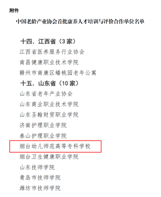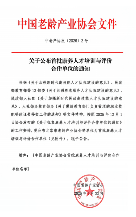 近日,中国老龄产业协会正式公布首批“全国康养人才培训与评价合作单位”名单,我校成功入选,成为山东省内少数获此殊荣的高职院校之一。这标志着我校在康养教育领域的专业建设和社会服务能力获得国家级行业组织的权威认可,也为推动区域康养事业高质量发展注入了新动力。