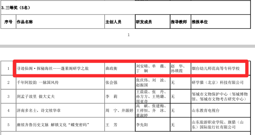 近日,第六届山东省研学旅游创新设计大赛获奖名单正式公布。我校公共服务系24级研学旅行管理与服务1班曲政衡、刘安晴、单薇、24级智慧健康养老服务与管理1班丁娴四位同学设计的作品《寻迹仙阁•探秘海丝》在中华优秀传统文化研学赛道中脱颖而出,荣获大赛三等奖,展现了我校学子扎实的专业素养与出色的创新实践能力。