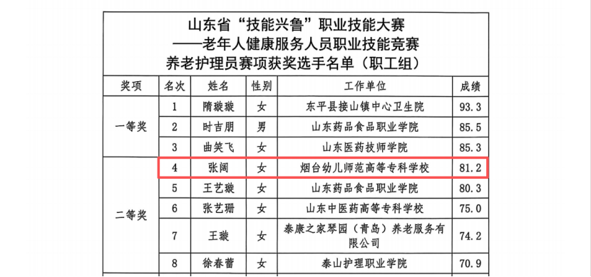 近日,山东省“技能兴鲁”职业技能大赛——老年人健康服务人员职业技能竞赛养老护理员赛项(职工组)在威海圆满落幕。我校公共服务系智慧健康养老服务与管理专业的张阔老师代表学校参赛,凭借扎实的专业知识与精湛的实操技能,在全省34名参赛选手中脱颖而出,取得第四名的优异成绩,荣获个人二等奖,学校凭借出色的组织工作斩获优秀组织奖!