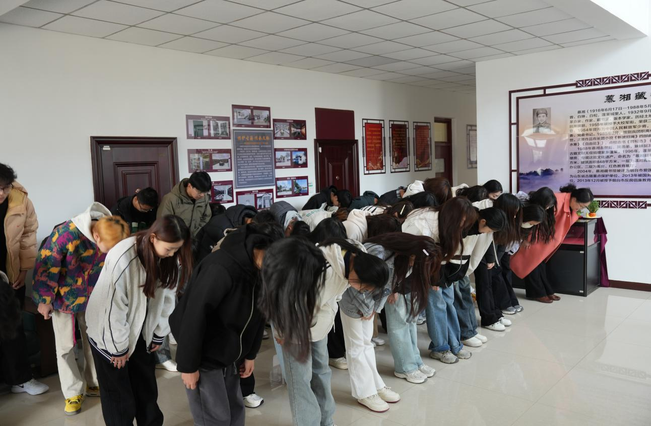 慕湘藏书馆罗馆长亲自担任讲解员,带领师生们首先来到慕湘将军生平介绍区。通过生动的图文资料与深情讲述,同学们了解到慕湘将军从胶东走出,投身革命洪流的传奇经历:他既是征战沙场的英勇将领,也是醉心文化的红色作家和藏书家。慕湘将军毕生搜集古籍文献,晚年将万余件珍贵藏品捐献给家乡,成就了这座承载历史记忆的文化殿堂--。