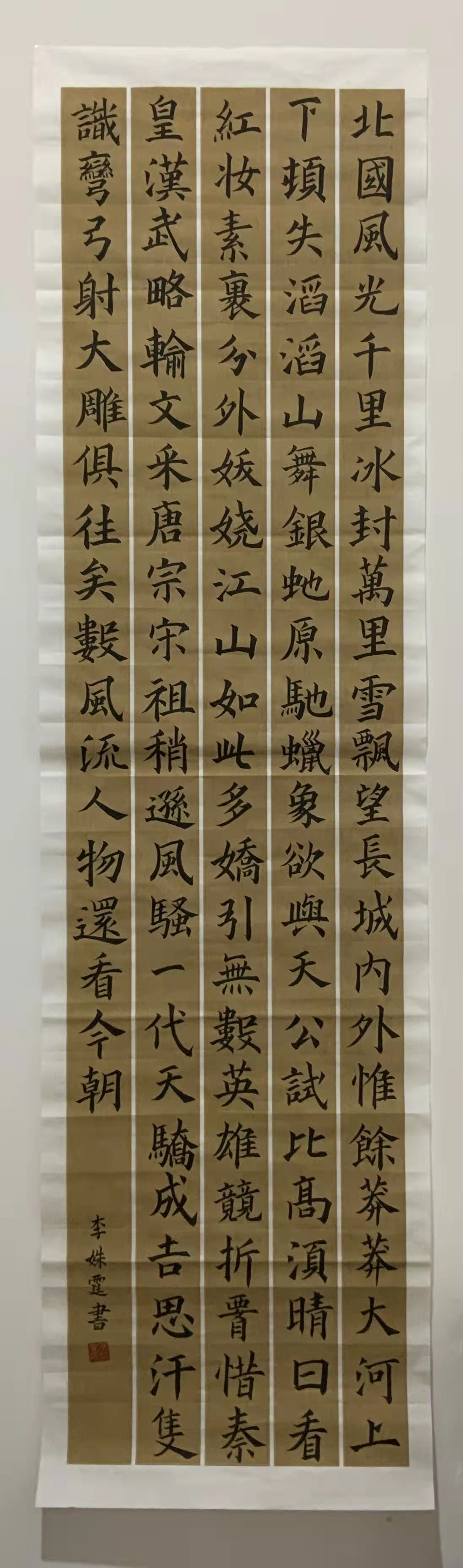 作品简介:《沁园春.雪》是毛泽东于1936年(丙子年)2月在山西省石楼县留村所创作的一首词。诗词分上下两阕,上阕描写乍暖还寒的北国雪景,展现伟大祖国的壮丽山河;下阕是对祖国山河的壮丽而感叹,并引出秦皇汉武等英雄人物,纵论历代英雄人物。此词不仅赞美了祖国山河的雄伟和多娇,更重要的是赞美了今朝的革命英雄,抒发伟大的抱负及胸怀。