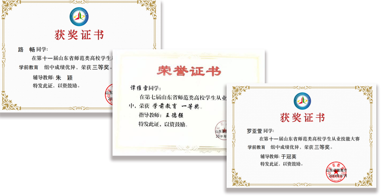 学生参加山东省师范类毕业生从业技能大赛获奖