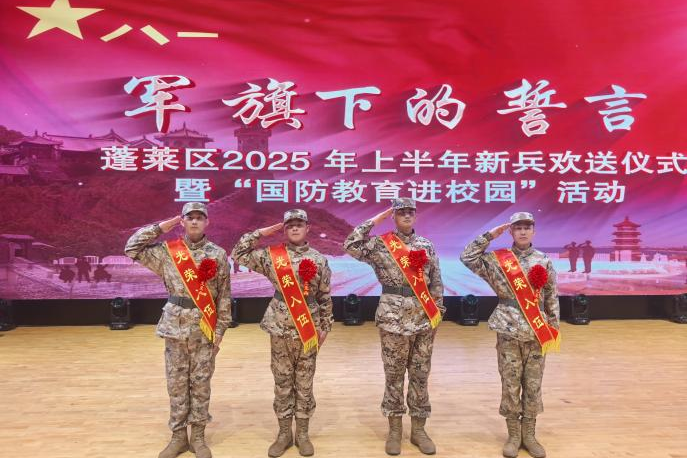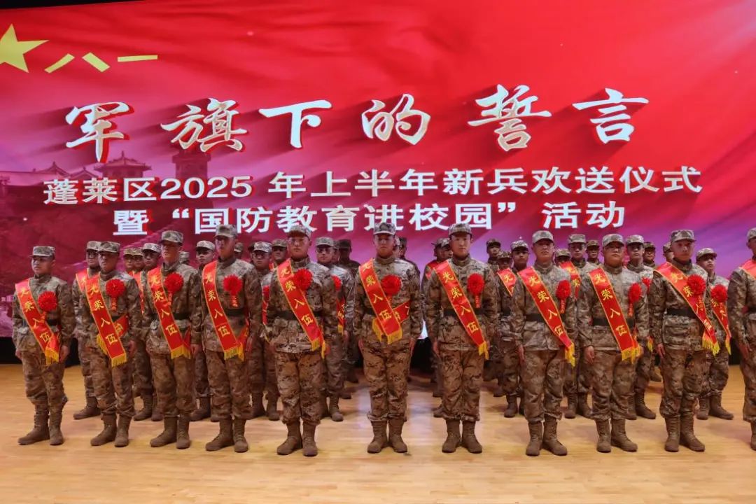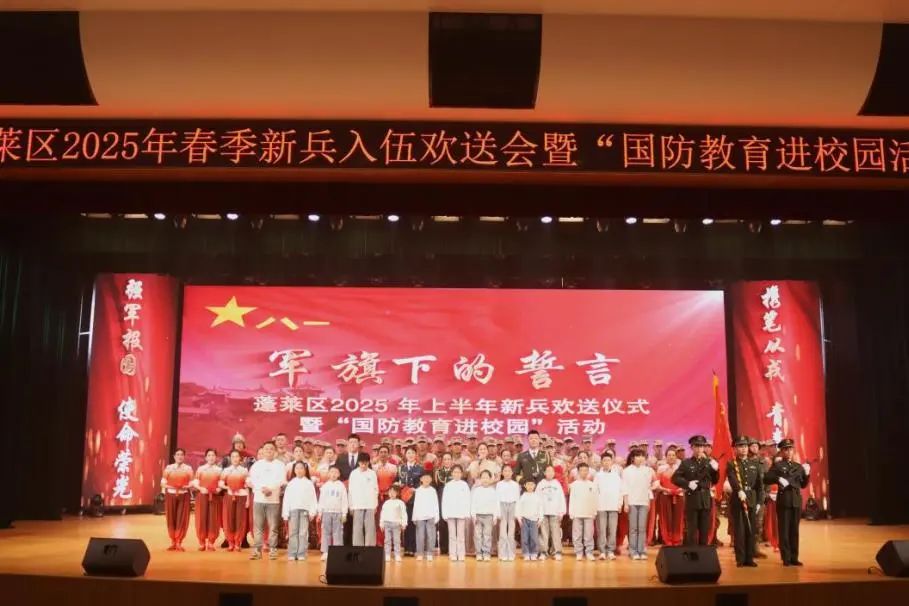 从军报国凌云志,不负韶华铸军魂。3月14日,我校携手蓬莱区武装部,举办了一场意义深远的入伍新兵欢送仪式暨“国防教育进校园”活动。校党委副书记、校长冯开梅,蓬莱区委副书记黄明利,蓬莱区委常委、蓬莱区人武部上校政治委员徐鸿波,蓬莱区副区长周宏亮,蓬莱区人武部上校部长、征兵工作领导小组副组长魏巍,蓬莱区征兵工作领导小组成员单位及各镇(街)领导出席欢送仪式,新兵家属及我校400余名学生代表参加活动,共同见证这一神圣时刻。