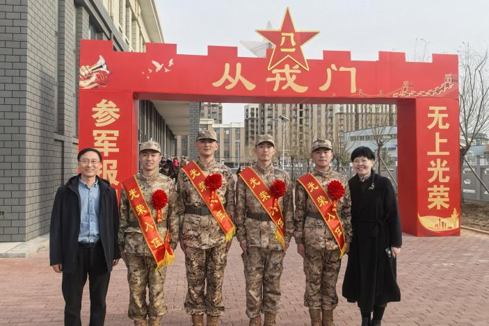 在新兵队伍里,有四名我校学生,他们即将告别校园,奔赴军营。冯校长与他们进行了亲切的交谈,向他们致以热烈祝贺,鼓励他们在军营里淬炼忠诚品格,永葆“听党指挥”的政治底色;厚植家国情怀,在强军实践中彰显校训精神;锻造过硬本领,用实际行动践行保家卫国的誓言。四名入伍新兵满怀自豪,郑重承诺将牢记母校教诲,以饱满热情和昂扬斗志投入部队训练与生活,不负青春,不辱使命,努力在军队中实现人生价值。