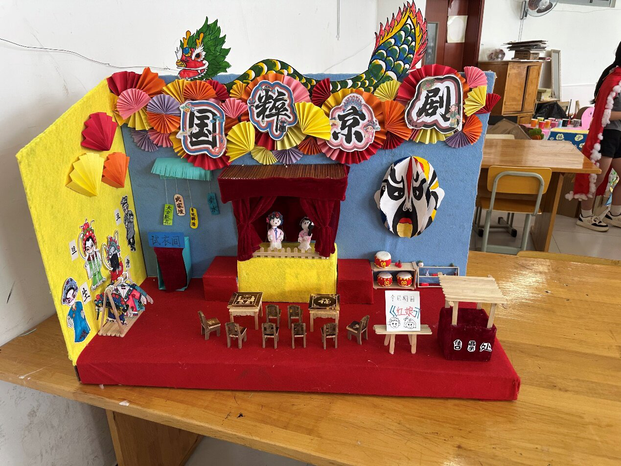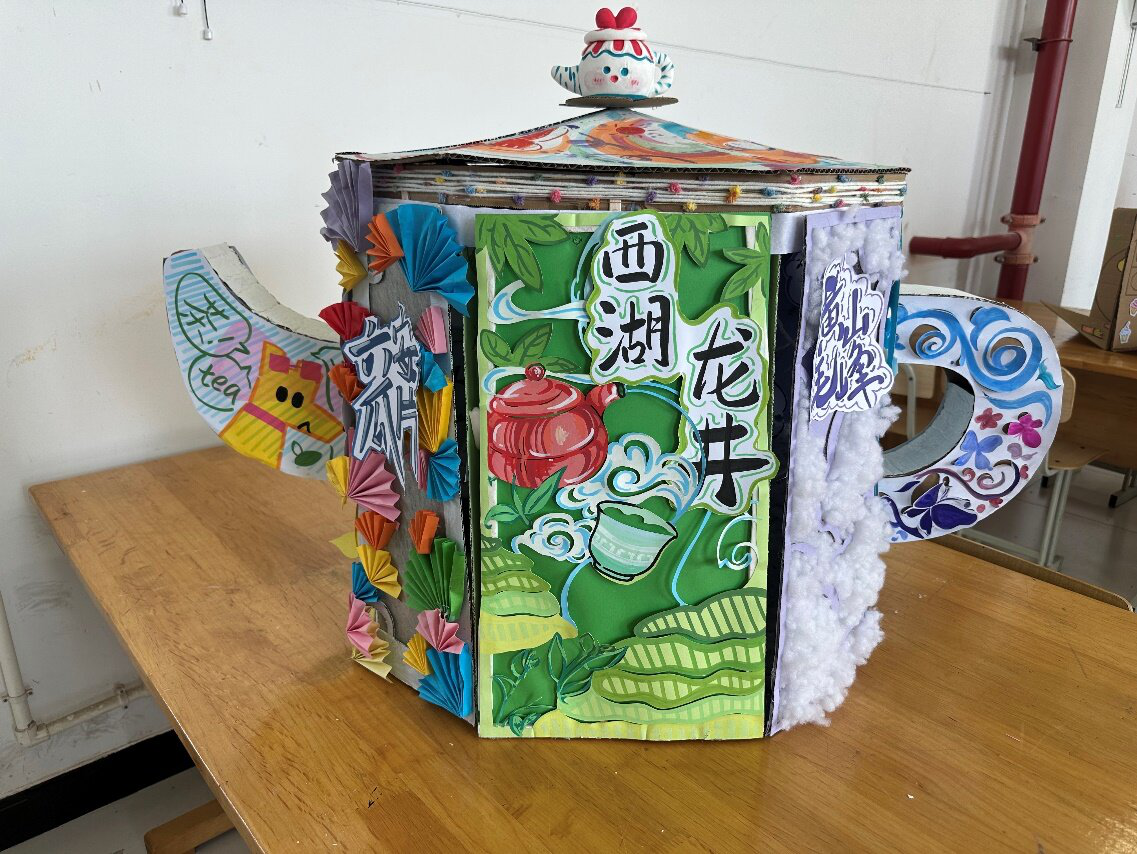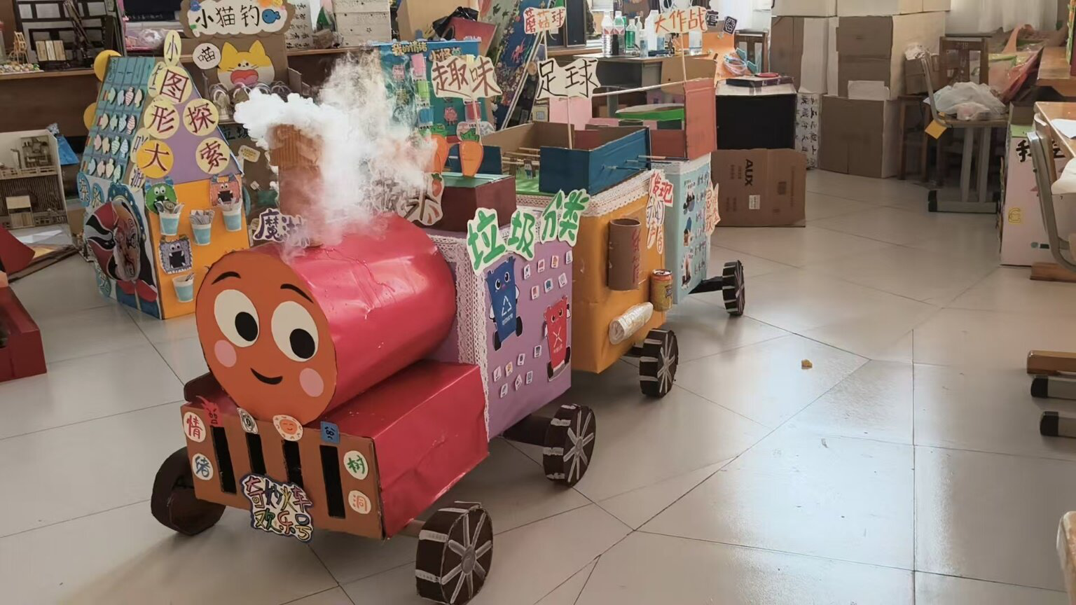 五周时间里,同学们以组为单位,团结协作,精雕细琢。将快递盒、旧布料等变废为宝,在老师们指导下创作出了兼具美观性与创造性的玩教具作品。