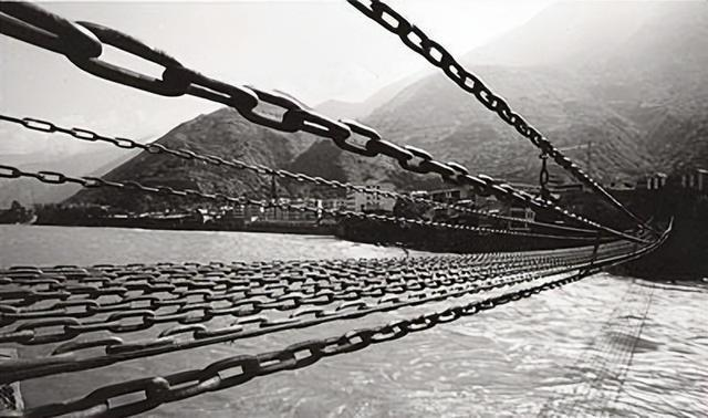 “往下看,褐红色的流水象瀑布一样从上游山峡间倾泻下来,冲击着河底参差耸立的恶石,溅起丈多高的白色浪花,流水声震耳欲聋。在这样的河里,就是一条小鱼,也休想停留片刻。”杨成武用这样一段话来描述桥长约有100米、用9根做底、4根做扶手、共3根碗口粗的铁链做成的泸定桥,以及流经桥下的大渡河水给那支大军带来的震撼。
