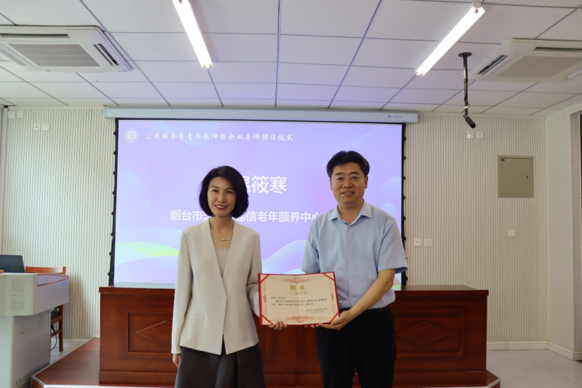 崔玉礼为蓬莱蕾娜范居家社区养老院长王倩颁发聘书