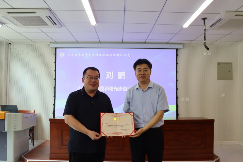 崔玉礼为山东健康新曙光医院龙口恒康颐养中心院长刘鹏颁发聘书