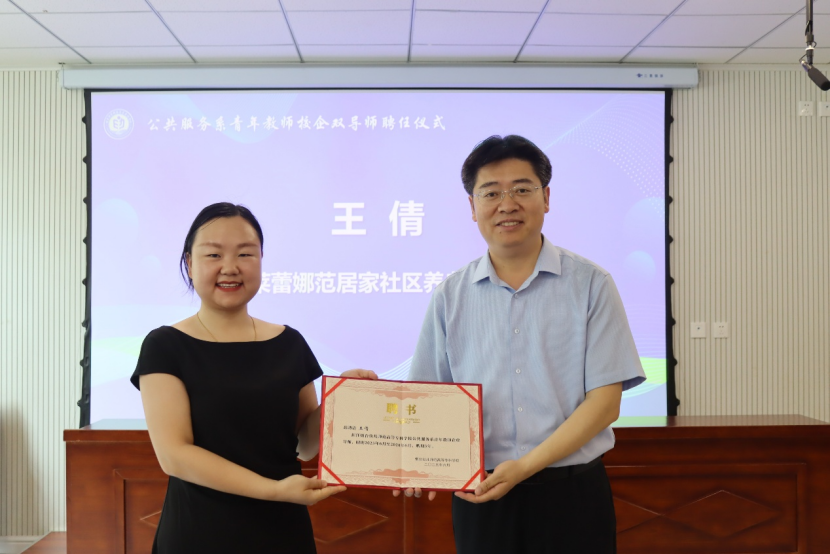 聘任仪式上,学校党委委员、副校长崔玉礼为以威海大姐集团董事长宋清禧、烟台市芝罘区德信老年颐养中心院长温筱寒、烟台市老年福利服务中心院长孙涛等为代表来自省内康养行业的10位企业精英颁发了校外导师聘书。校内导师团队包括招生与就业处处长姚其志、教务处副处长李韦、公共服务系副书记、副主任刘伟伟、教务处综合科副科长位新丽、公共服务系副教授杨青、公共服务系综合科副科长王凯举等。培养对象覆盖公共服务系全体青年教师,构建起“技术传承+教学创新”双向赋能机制。