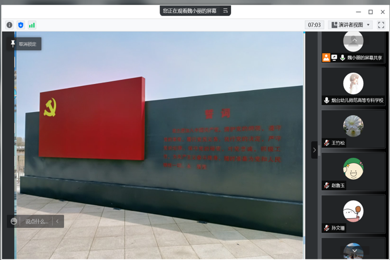 又是一年春来到,为了更好地传承红色基因,引导各位党员同志厚植爱党爱国情怀,树立崇尚英雄、缅怀先烈的良好风尚,牢记立德树人根本任务,发挥党史学习教育阵地重要作用,抓好党史学习教育,思想政治教育部党支部通过线上学习蓬莱市平山河党史主题公园相关内容的方式,开展了“传承红色基因、弘扬英烈精神”主题党日活动。