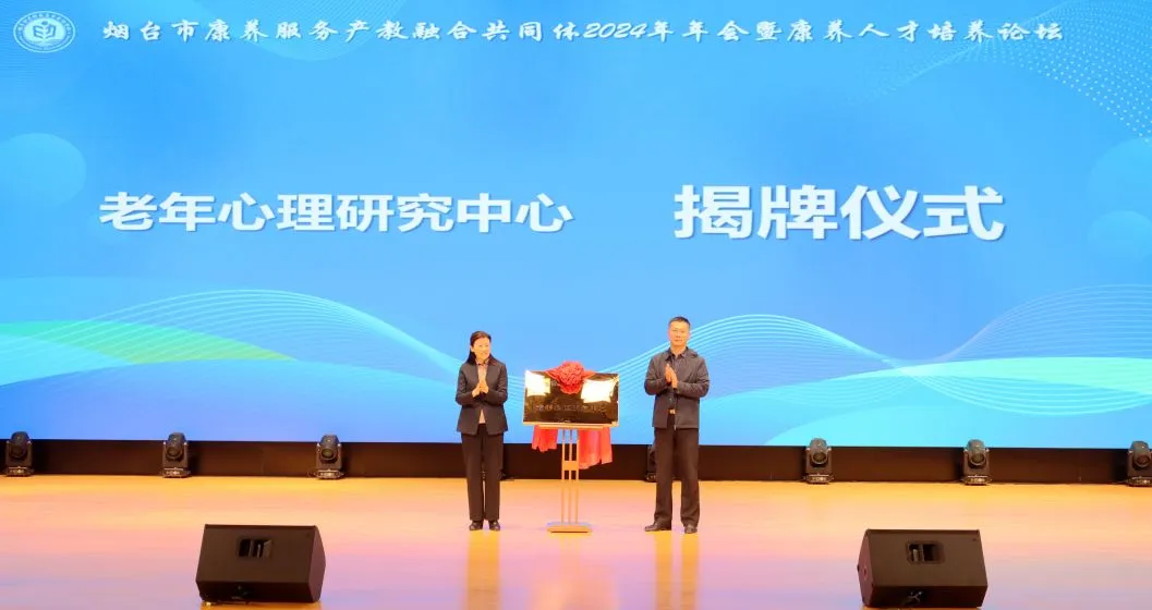 为汇聚优质专业资源,服务区域康养事业,有效整合我市养老机构心理研究资源,提升老年心理健康研究综合水平,完善老年心理服务体系,并为积极应对人口老龄化国家战略提供专业支撑,本次会议还成立了老年心理研究中心。烟台市民政局党组成员、副局长徐明浩和烟台市教育局党组成员、副局长张丽两位领导为中心揭牌,这一举措将为康养服务领域的研究与实践提供专业指导,推动行业发展。