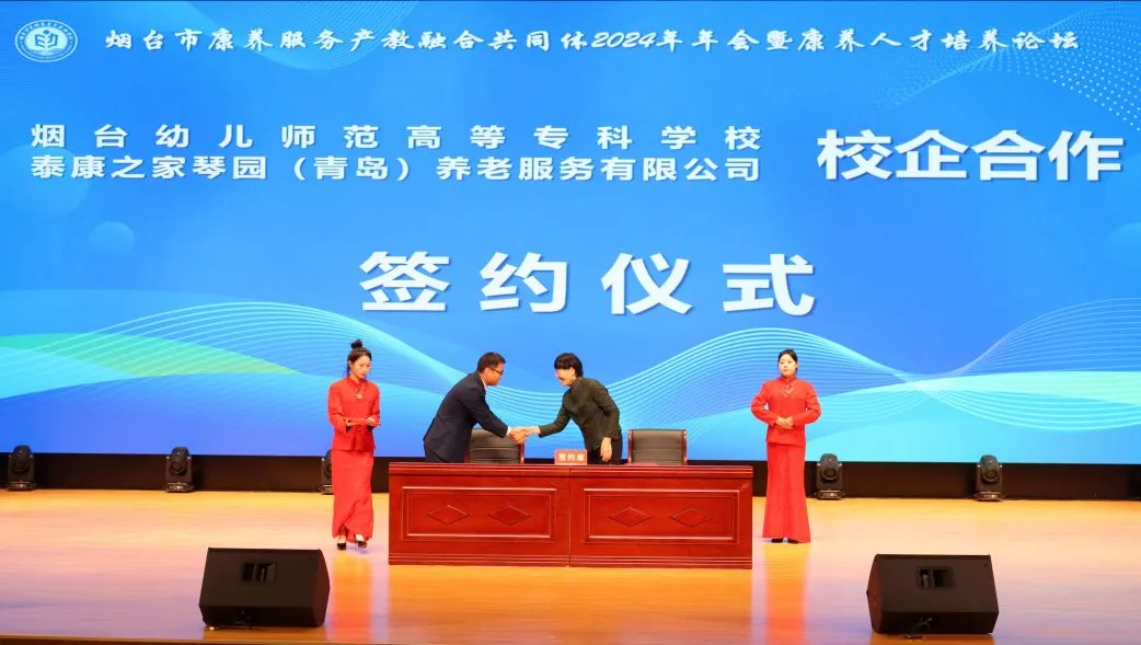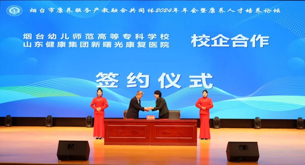 烟台幼儿师范高等专科学校党委副书记、校长冯开梅与四家企业签订了校企合作协议,双方将在人才培育、实习实训、资源共享等多方面深度协作,携手打造康养人才新生态,为推动区域康养事业高质量发展蓄势赋能,共启新篇章。