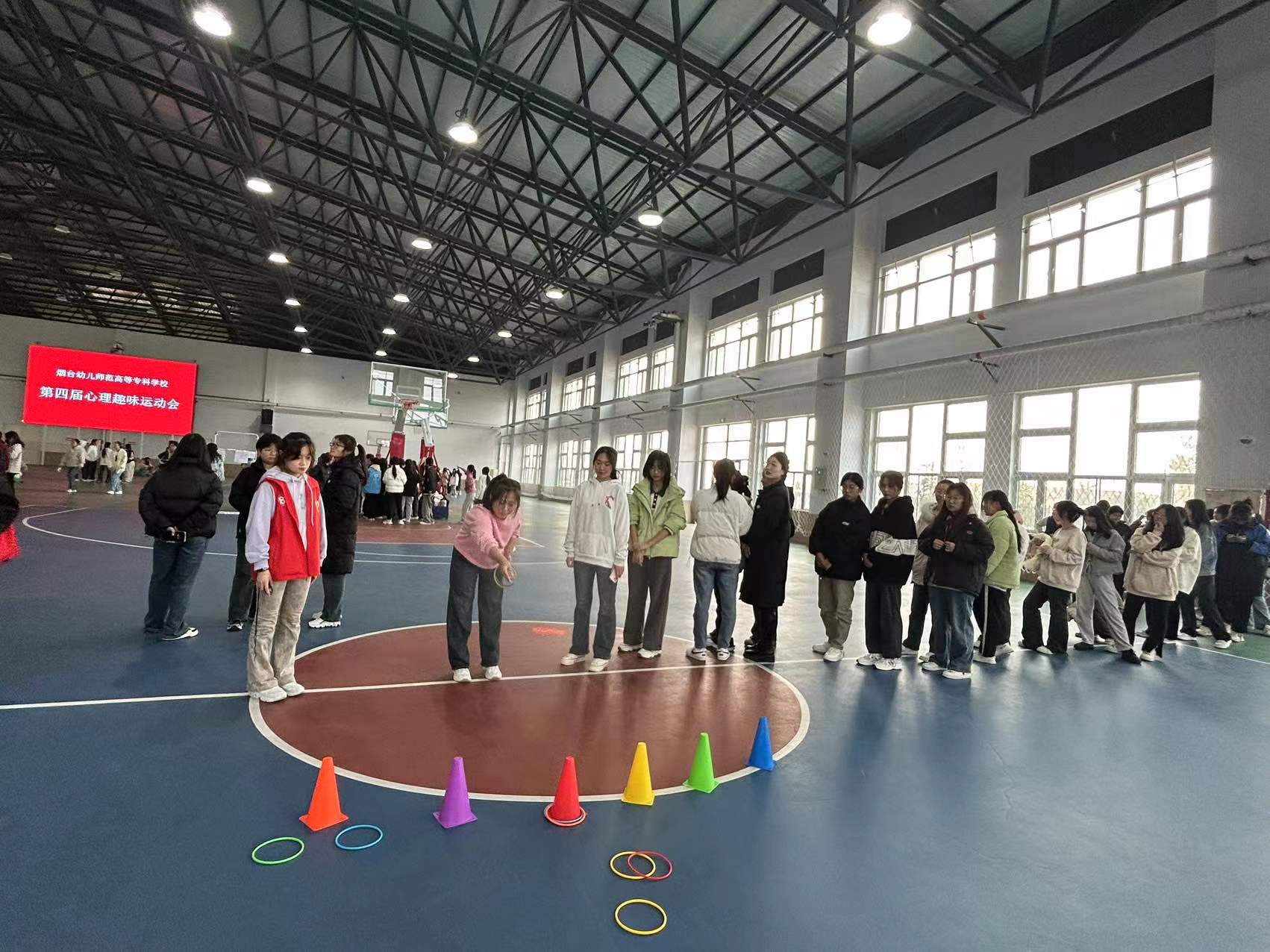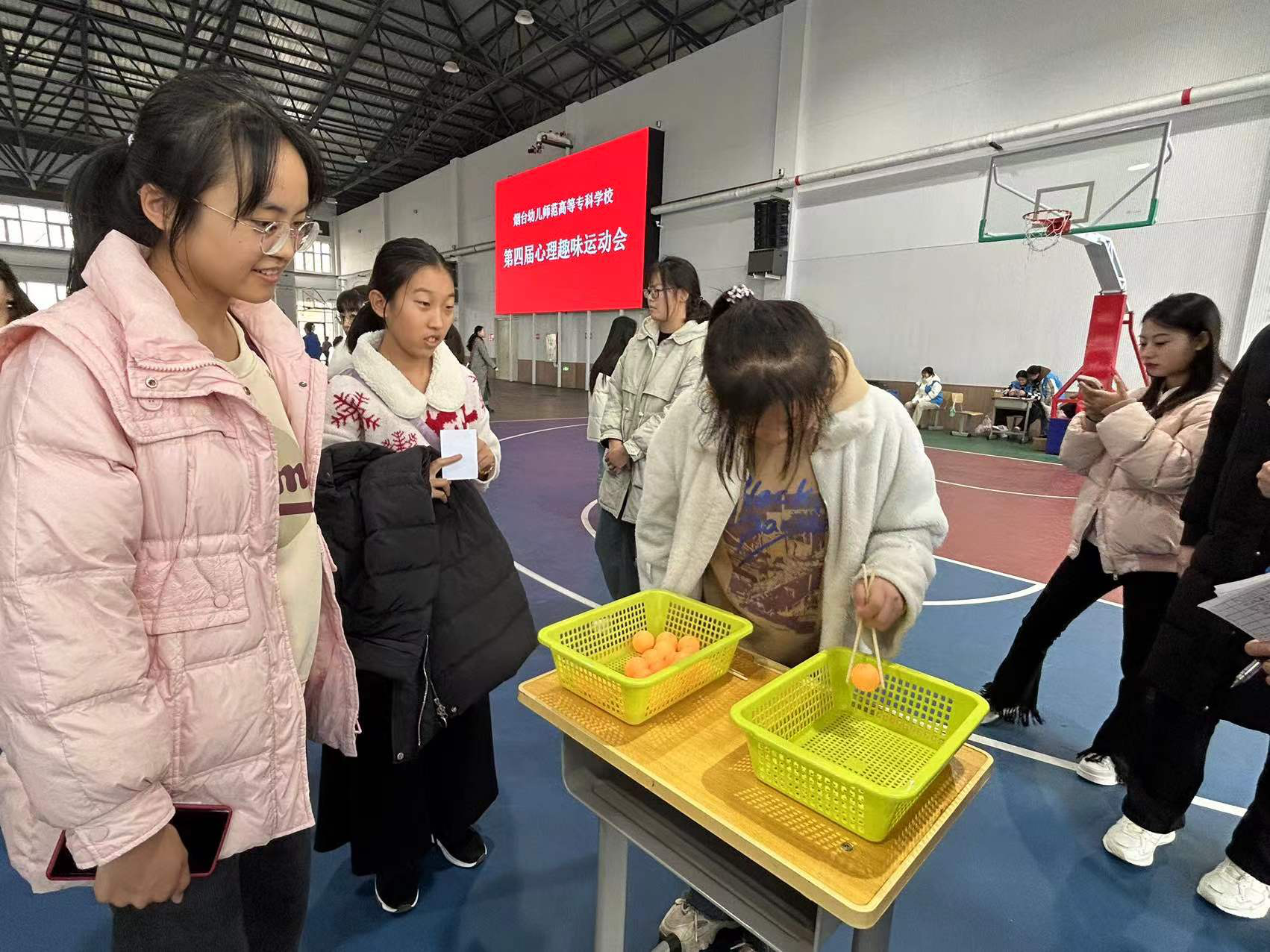 11月22日下午,由心理健康教育中心主办,阳光心理社承办的第四届心理趣味运动会在烟幼高专体育馆顺利举办,本次心理趣味运动会由巧手取物、珠行千里、蚂蚁翻叶子、心心相印、正中圈套、风卷乒乓球、圈之魅力七个项目组成,共有近千人次学生参与其中。