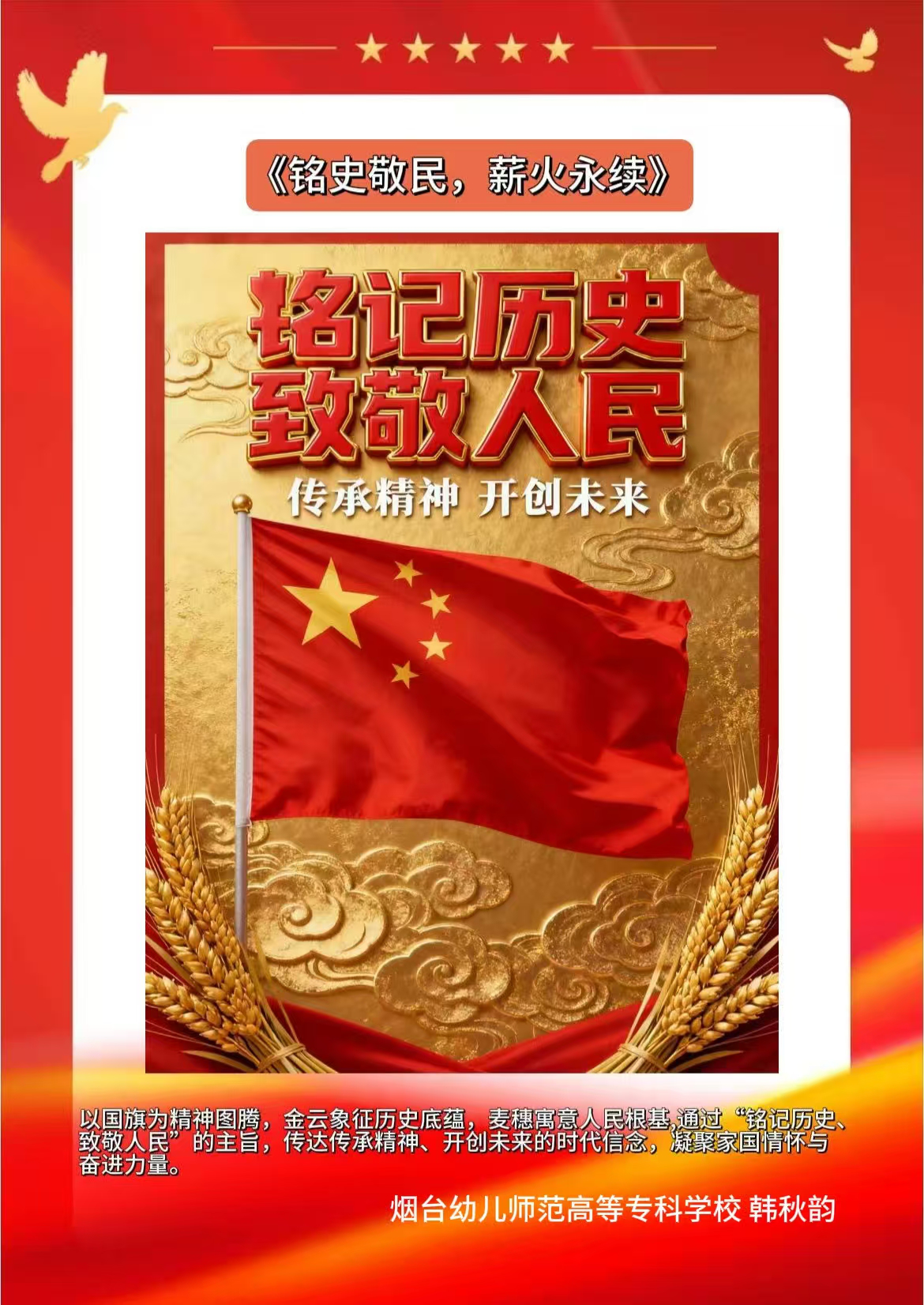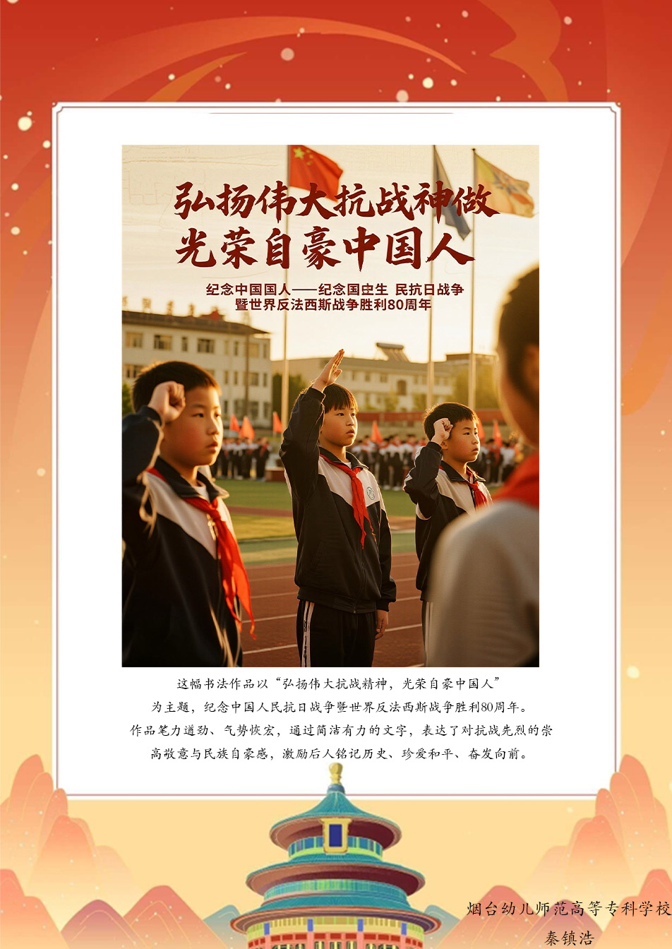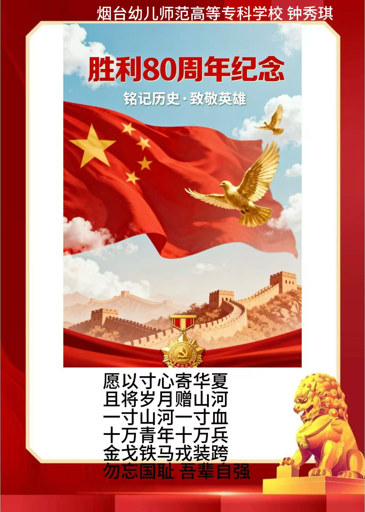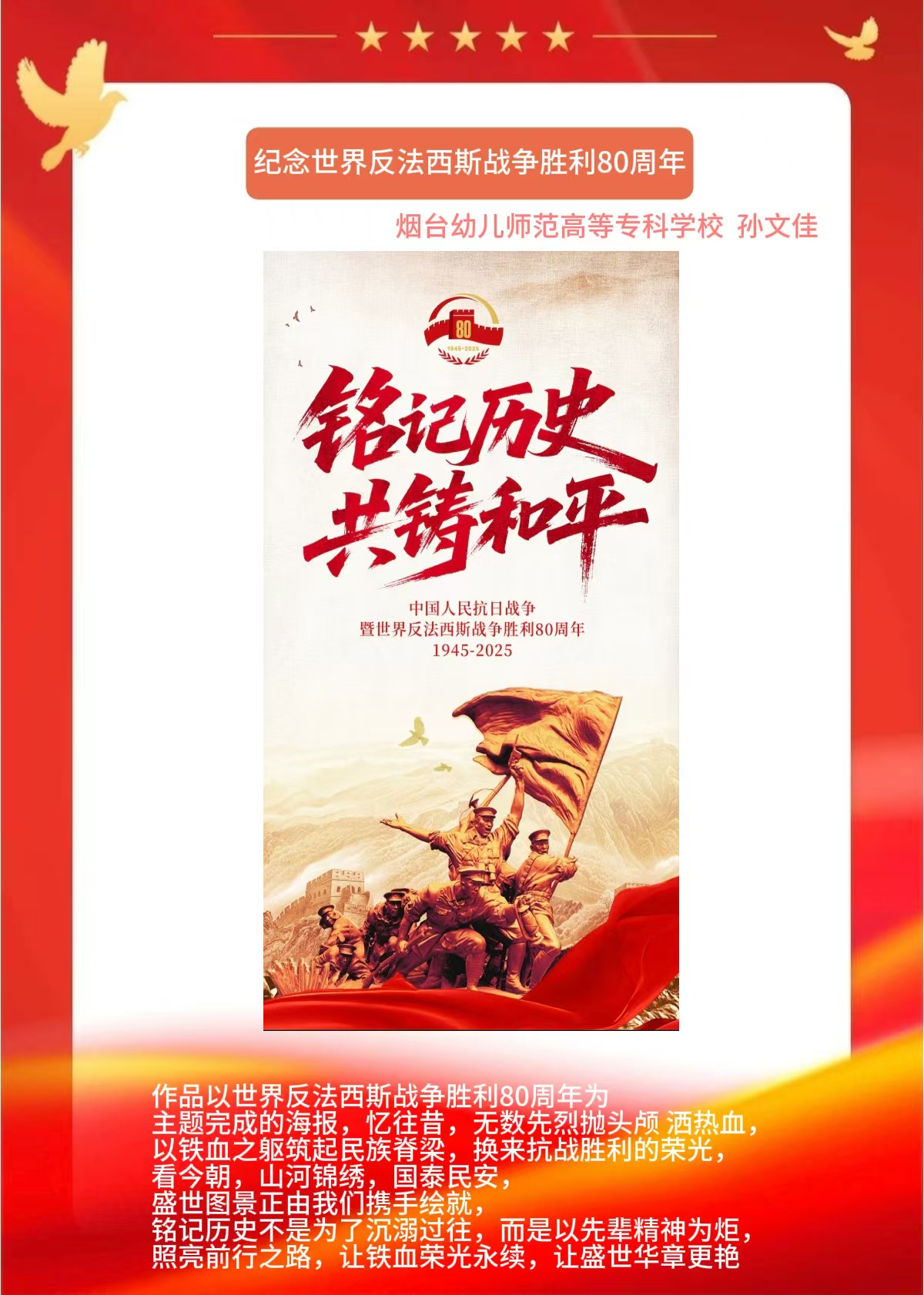 假期结束后,同学们将实践中的所见所感转化为丰富多样的创作与展示:一笔一画勾勒红色故事的手抄报,把战火纷飞的岁月与今日的盛世图景巧妙融合;声情并茂的诗歌朗诵,以铿锵语调传递对革命先辈的敬仰与对祖国的赤诚;“大学生讲思政课”活动中,学生化身主讲人,结合实践经历解读红色精神的时代价值,让思政课堂更具青春温度与感染力。这些成果既是实践感悟的凝练,更是爱国情怀的传递,让红色精神在创作与分享中代代相传,激励学生将爱国情、强国志融入日常行动。