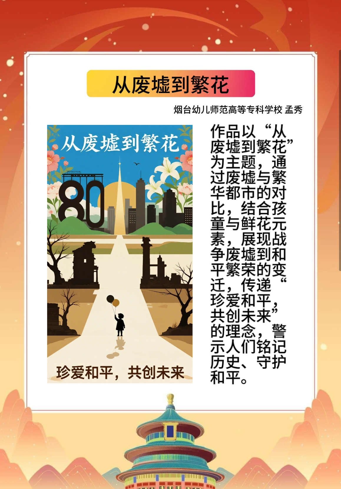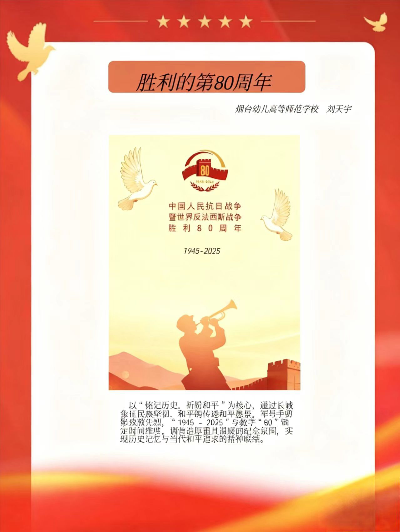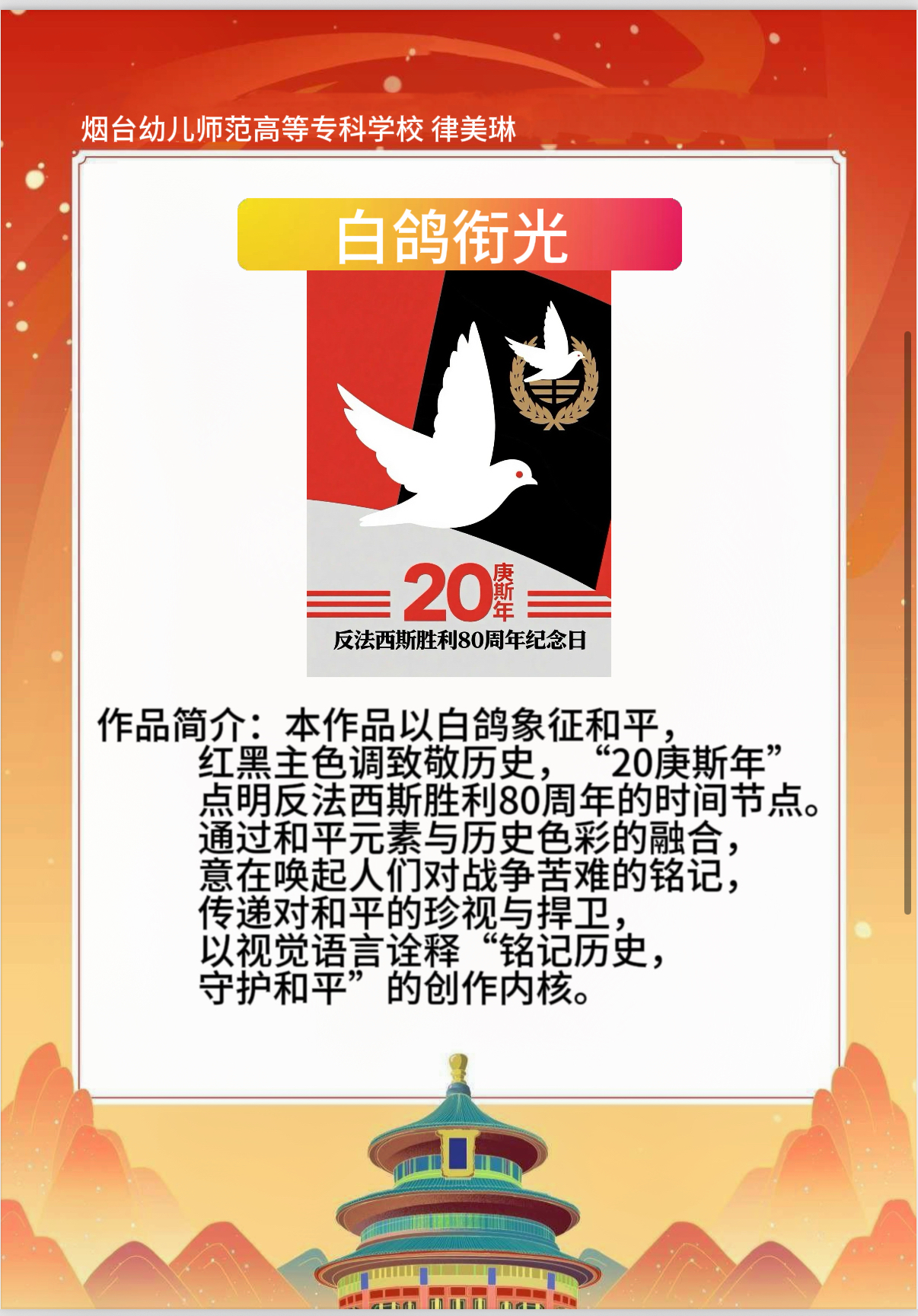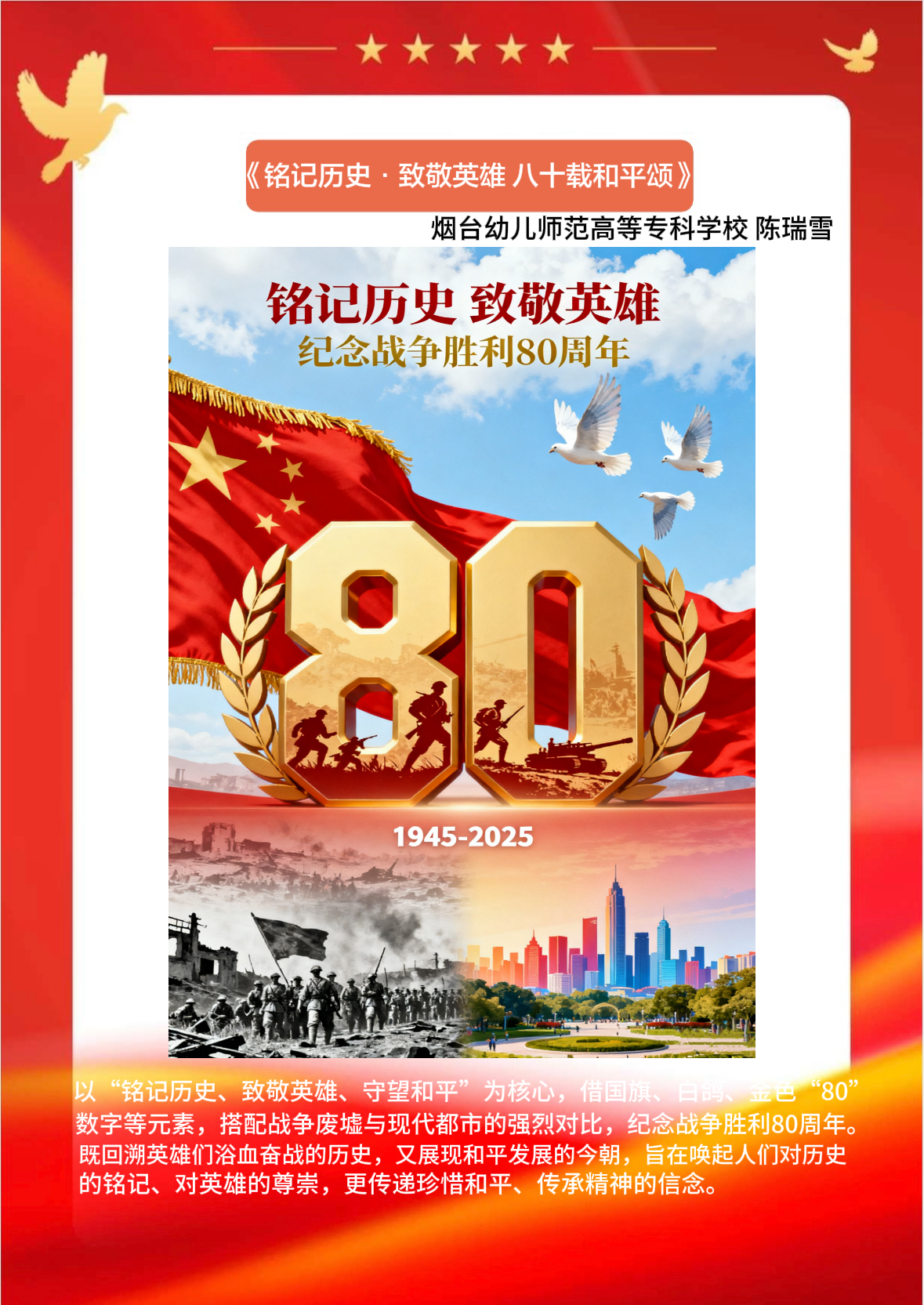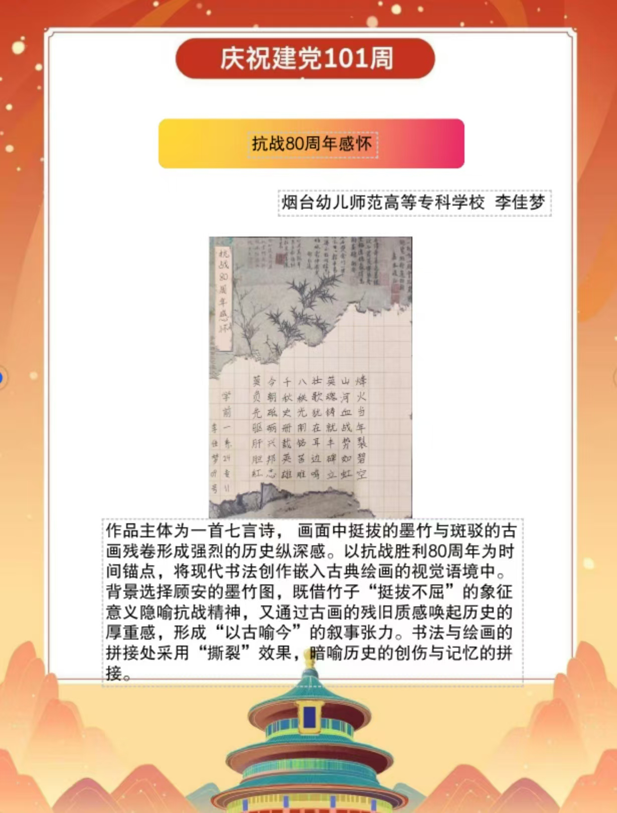 假期结束后,同学们将实践中的所见所感转化为丰富多样的创作与展示:一笔一画勾勒红色故事的手抄报,把战火纷飞的岁月与今日的盛世图景巧妙融合;声情并茂的诗歌朗诵,以铿锵语调传递对革命先辈的敬仰与对祖国的赤诚;“大学生讲思政课”活动中,学生化身主讲人,结合实践经历解读红色精神的时代价值,让思政课堂更具青春温度与感染力。这些成果既是实践感悟的凝练,更是爱国情怀的传递,让红色精神在创作与分享中代代相传,激励学生将爱国情、强国志融入日常行动。