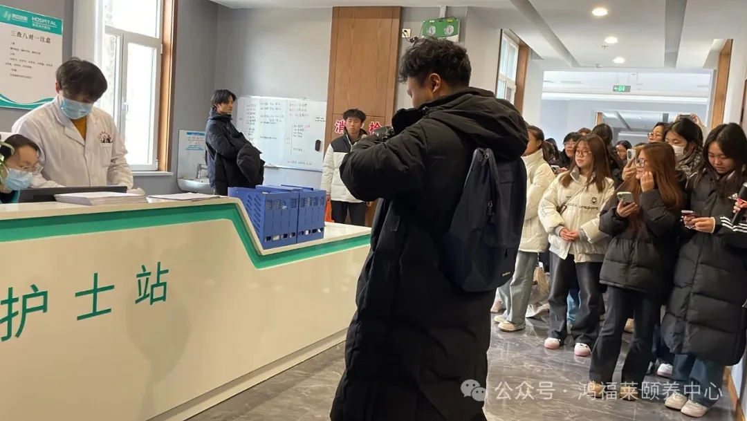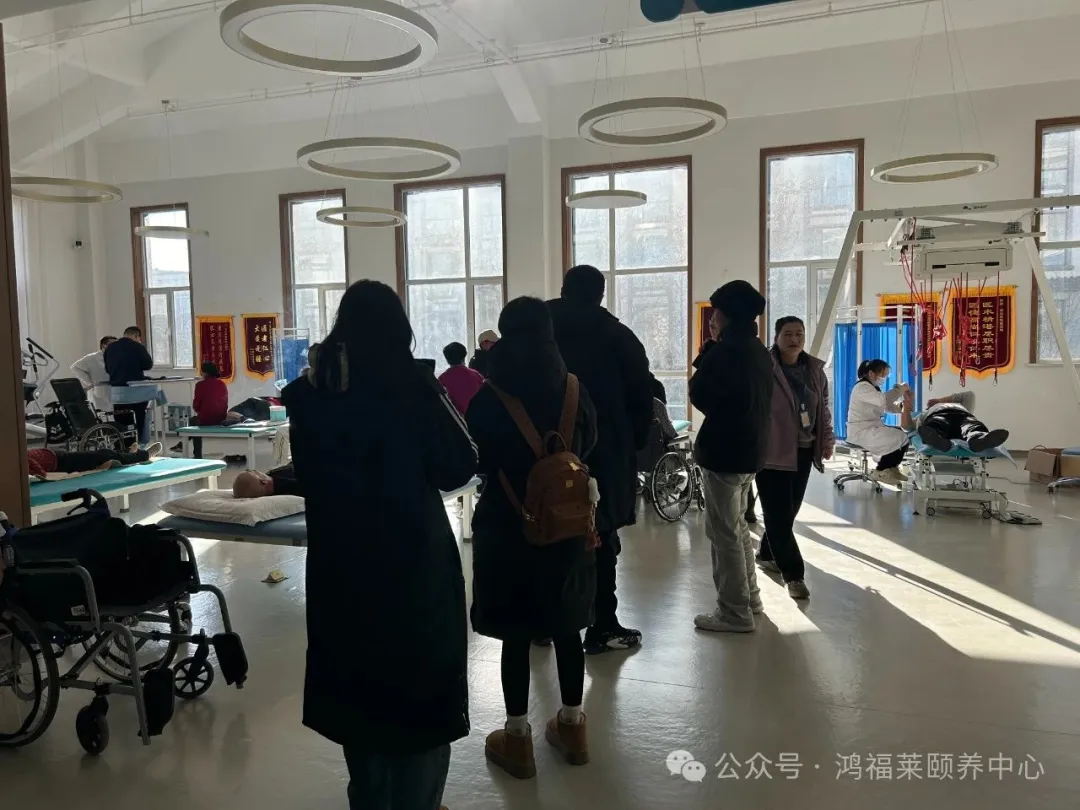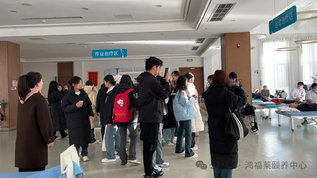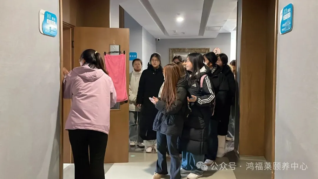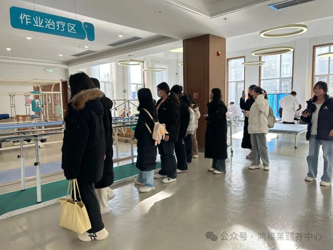 随后工作人员带领大学生参观了康复理疗中心和专业的护理团队,详细了解了鸿福莱颐养中心为长者提供了规范化康复护理和生活照料服务。本中心特设内科与康复科,配有中医师、康复治疗师、保健按摩师等。