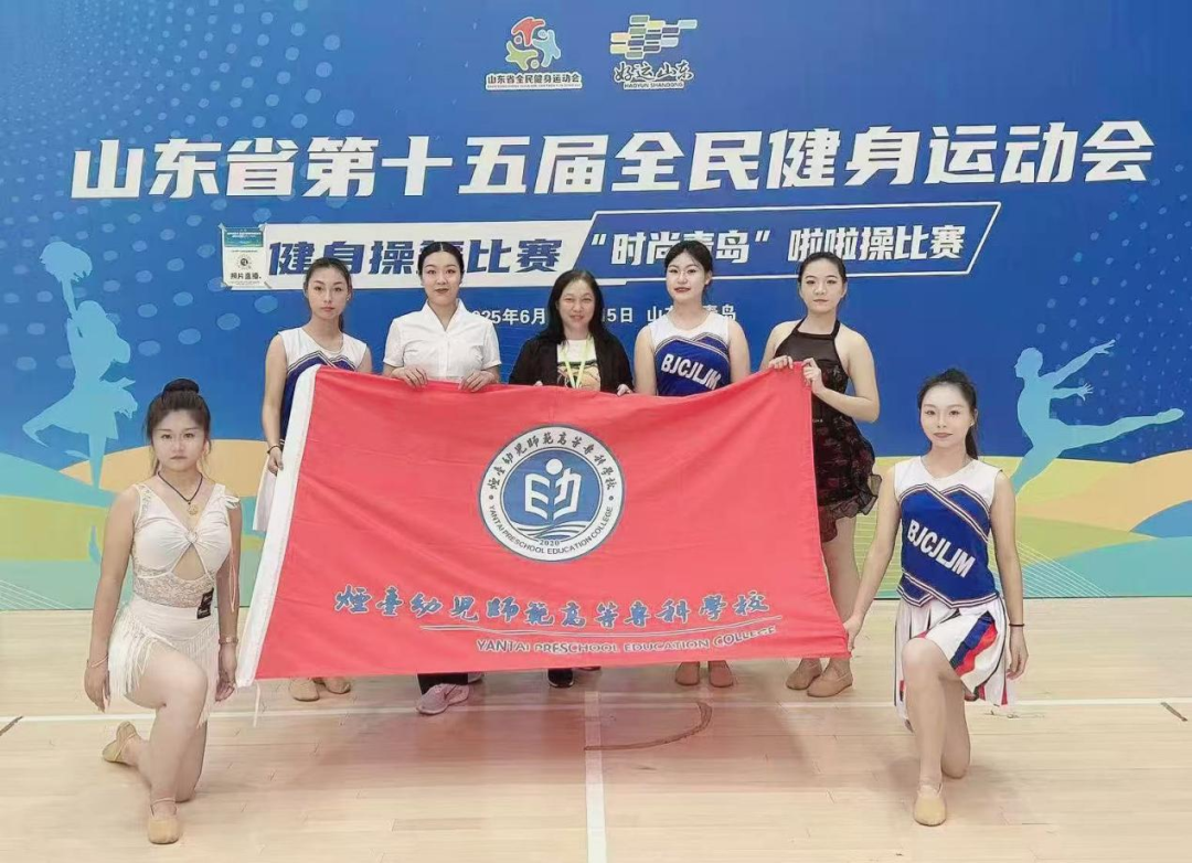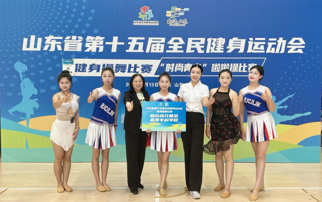 青春正当时,舞动展风采。6月13日至15日,由山东省体育局、山东省教育厅等10部门联合举办的山东省第十五届全民健身运动会健身操舞比赛在青岛圆满落幕。本次大赛汇聚了来自全省8个地市70家单位的200余支参赛队伍,共计1200余名运动员。烟台幼儿师范高等专科学校代表队参加了8个项目的角逐,全部获奖,共获得一等奖7项、二等奖1项,学校同时荣获大赛“优秀组织奖”。
