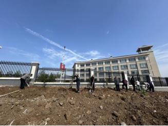 活动当天,阳光明媚,校园南院墙外的空地上呈现一片热火朝天的景象。全体教师分成若干小组,分工明确、协作默契。大家手持铁锹,严格按照标准开挖树坑,确保每一株苗木都能在适宜的环境中生长。