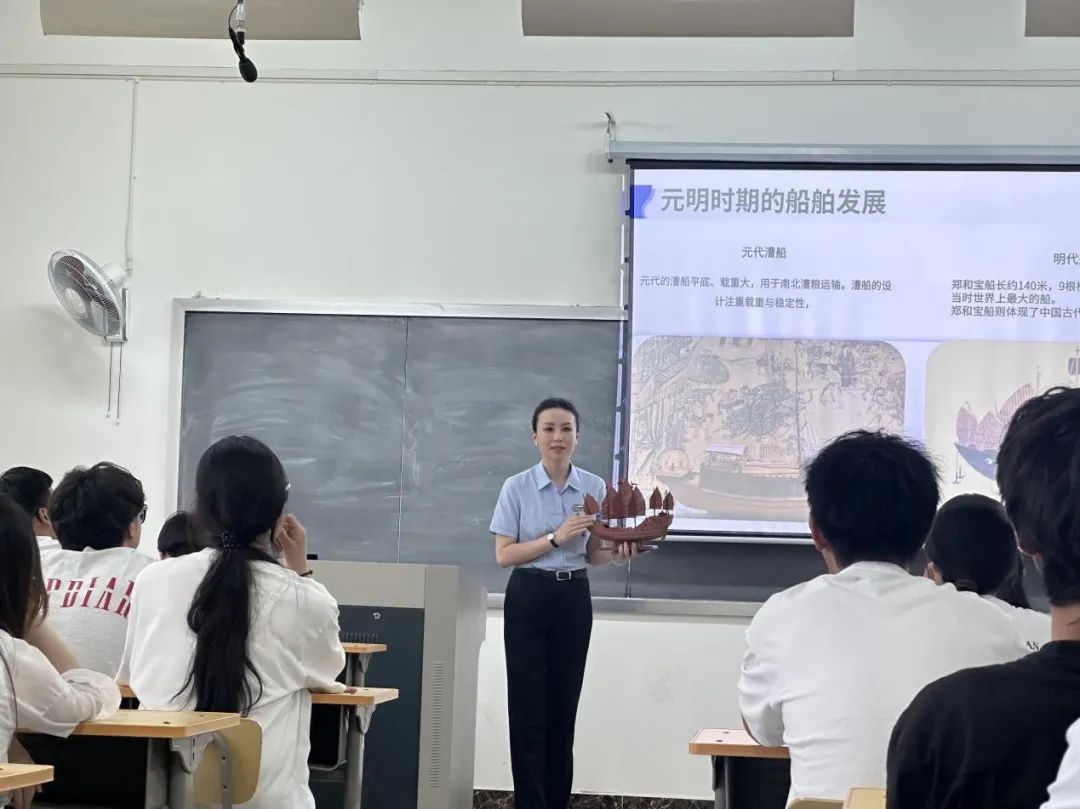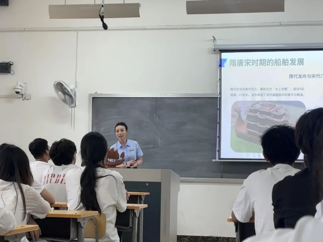 活动现场,古船馆的工作人员通过精彩的图片、生动的视频以及珍贵的实物展示,将古船的发展历程、种类特点以及背后的历史故事一一呈现在同学们眼前。从古代的木质帆船到现代的先进船舶,从航海工具的演变到航海技术的进步,每一个知识点都吸引着同学们的目光,激发着大家的好奇心和求知欲。