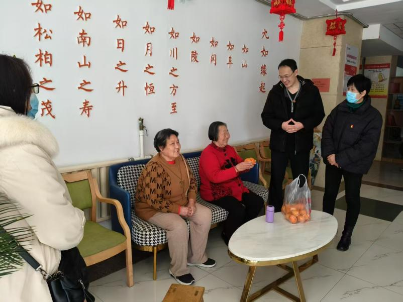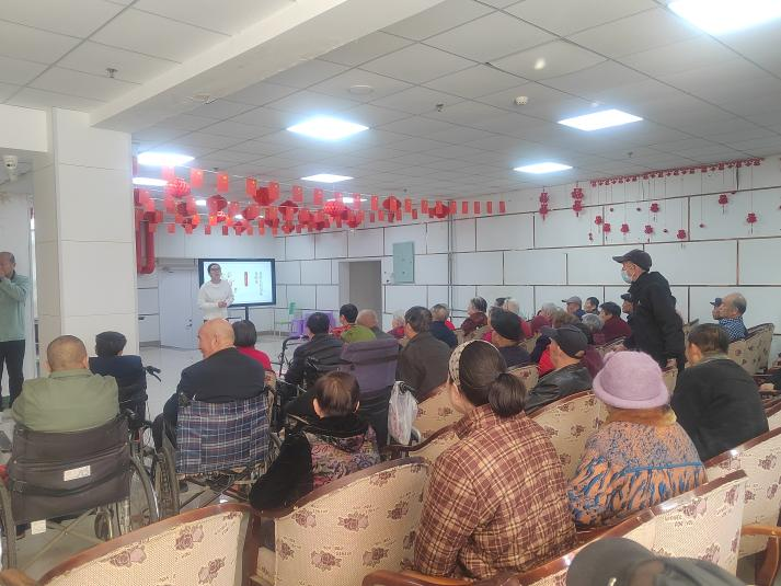 党员教师分组与老人们围坐话家常,聆听老人们讲述过往岁月,现场气氛轻松愉悦,充满欢声笑语。党员教师们用耐心和关爱,让老人们感受到了家人般的温暖,也让奉献精神在交流互动中熠熠生辉。