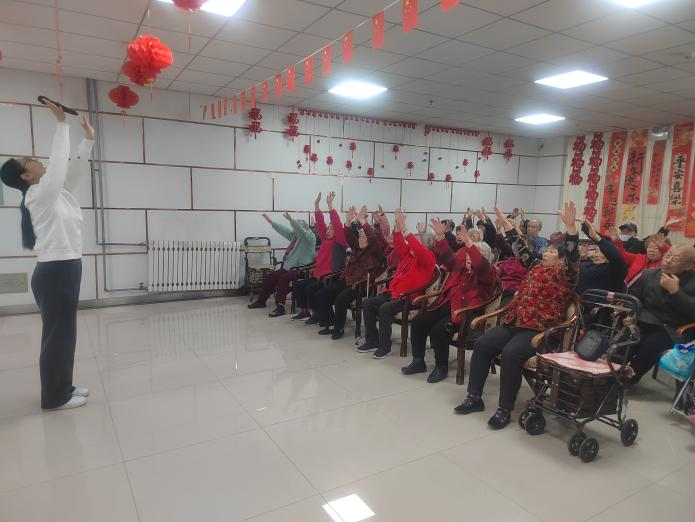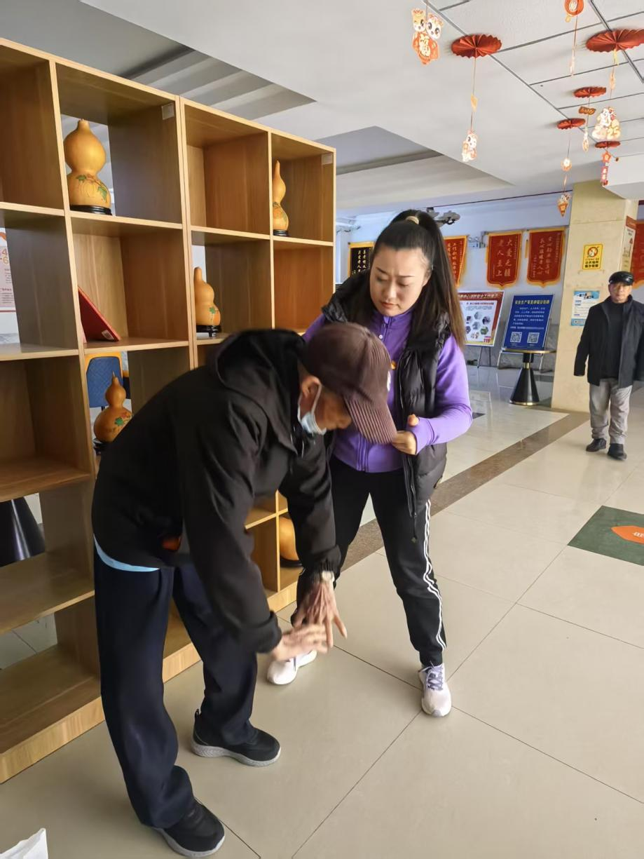 "爷爷奶奶们,每天坚持踮脚尖、拍打经络,既能强身健体,又能预防跌倒……"体育教研室的董亚萍老师,结合老年人的身体特点,围绕老年人科学体育锻炼这一主题,用通俗易懂的语言进行讲解。带领老年人现场示范动作,指导老人掌握居家运动实用技巧。