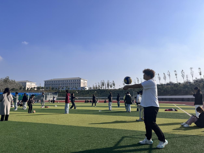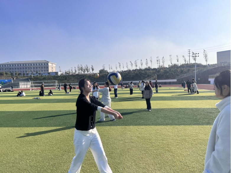 “排球垫球”比赛中,选手们全神贯注,他们灵活地调整着身体姿势,双手稳稳地接住排球,一次次将球高高垫起。那上下飞舞的排球,仿佛是跳动的音符,奏响了青春的乐章。