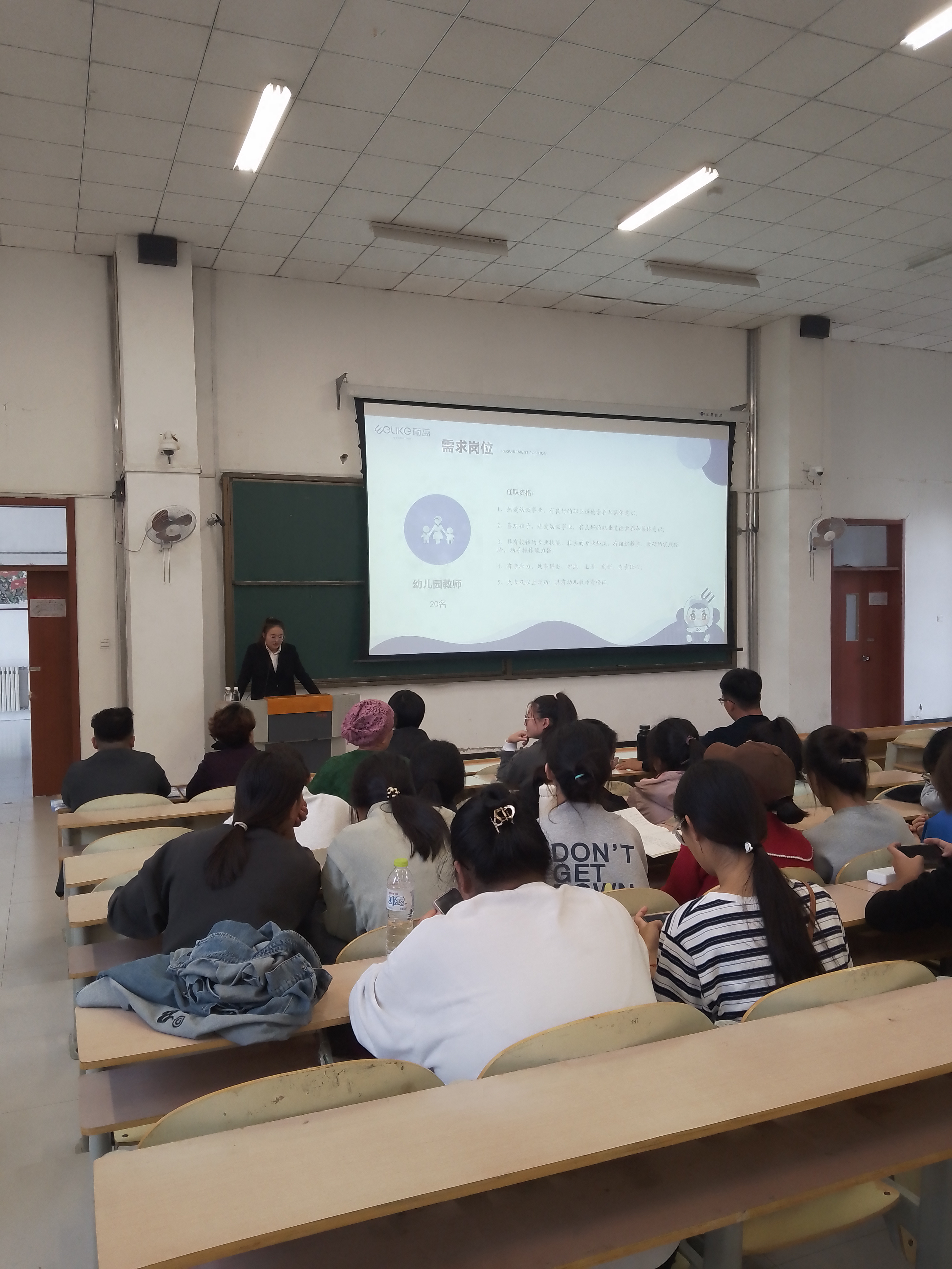 金秋十月,丹桂飘香,正是收获的季节,亦是求职和招聘的黄金期。为深入贯彻党的二十大精神,认真落实党中央、国务院“稳就业”“保就业”决策部署,抓好促就业关键期,充分发挥校园招聘主渠道作用,10月25日下午,学前教育二系在A113举办了首场企业宣讲招聘会。阿舞艺术培训学校、龙口东江街道幼儿园、蔚蓝教育集团、烟台行知和幼儿园参加了此次宣讲会。