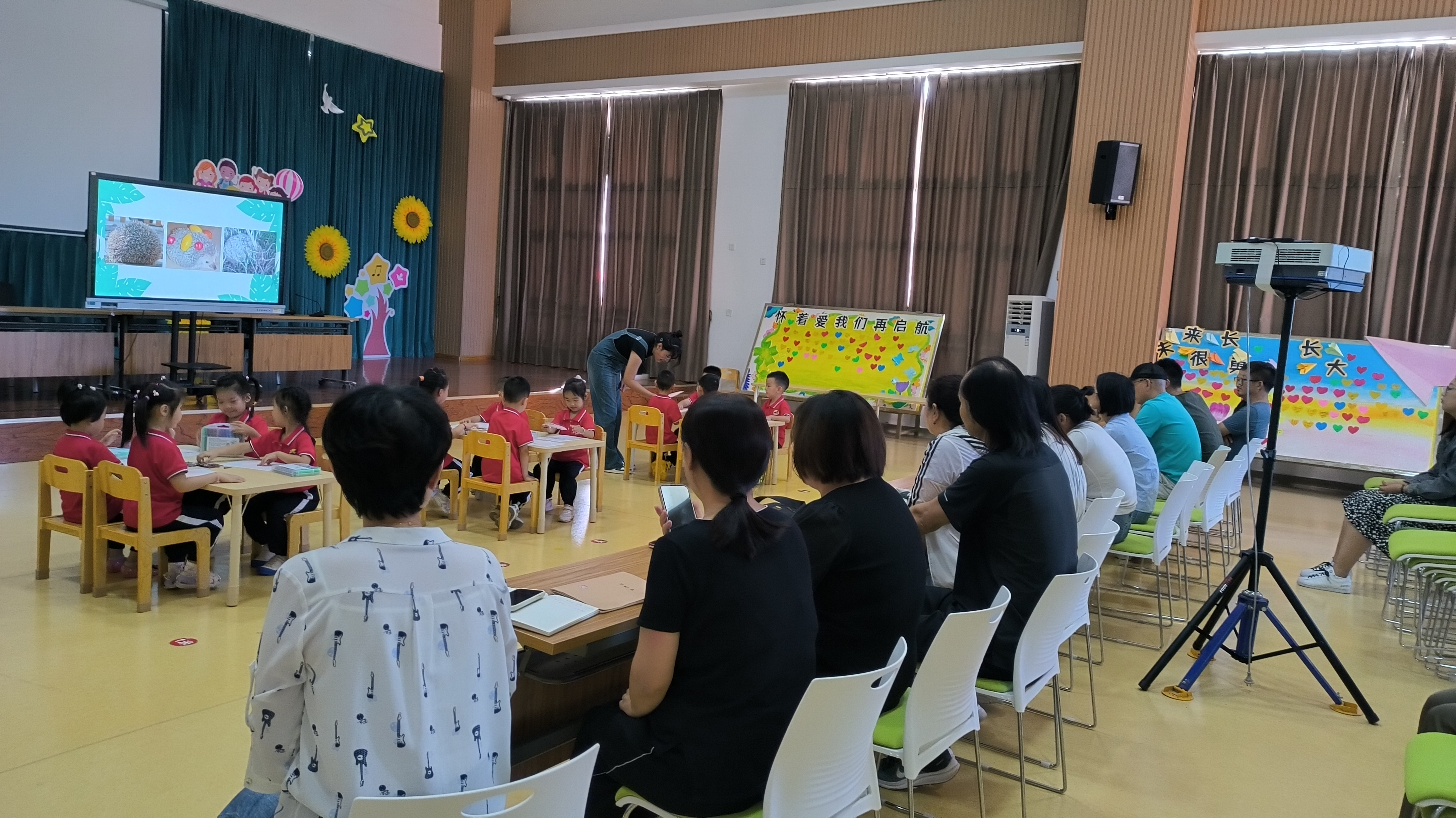 在实验幼儿园东关总园进行的是由美术教研室全部教师及学前教研室部分教师带领学生开展的美术领域活动。孙艺宁同学以《小刺猬的制作》为题给中班的幼儿们带来了一节生动有趣的美术课。该同学以颜色卡片、彩笔等材料让幼儿们亲身感受和体验色彩的美妙,通过不同形状的特征和组合方式,让其体验色彩和线条的魅力,在自由、放松的氛围中发挥自己的创造力和想象力,锻炼幼儿们的动手能力。