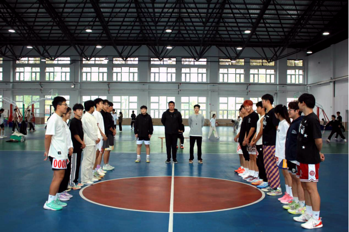 “滴——双方运动员入场——双方运动员相互致意”,音落赛起,在技术代表姜浩科长的带领下篮球比赛正式拉开序幕。