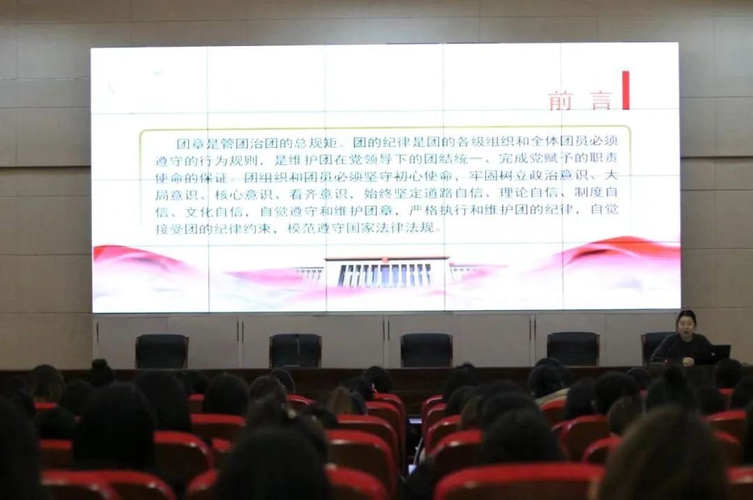 开班仪式结束后,由马克思主义学院赵鲁玉老师为第四期学员开讲第一课——解读《中国共产主义青年团纪律处分条例(试行)》。