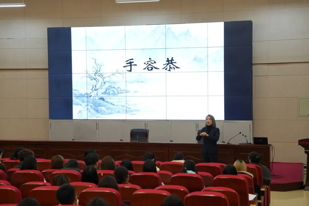 5月9日晚上6点半,杨青老师在办公楼217为青马工程学员们精心举行了一场关于《仪容仪表礼仪》的专题讲座。杨老师凭借丰富的知识储备与实践经验,深入浅出地为大家讲解了“足容重、手容恭、目容端、口容止、声容静、头容直、气容肃、立容德、色容庄”的传统礼仪内涵。