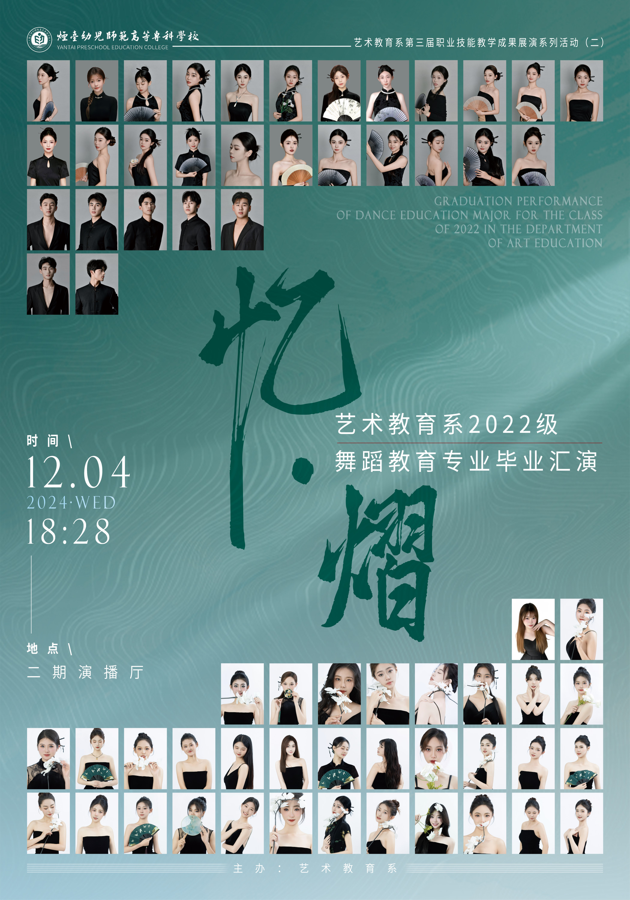 兹定 12 月 4 日(周三)18:28 于二期演播厅,启幕《忆•熠》——烟台幼儿师范高等专科学校 2022 级舞蹈教育毕业晚会。