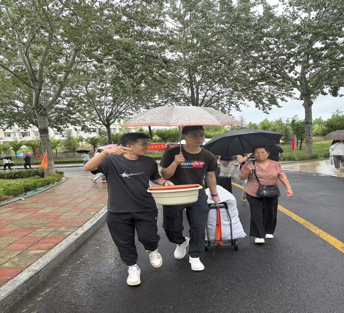 针对携带大件行李的学生,主动上前搭把手,协助搬运行李至宿舍楼下,用实际行动减轻学生负担。