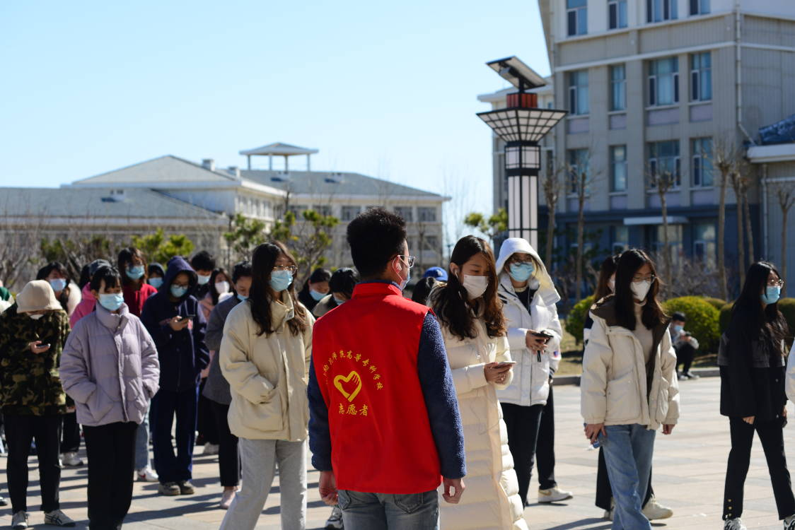 来自艺术教育的美术班的志愿者说:“一听到核酸检测工作需要大量志愿者,第一时间我就报了名,一大早我来到图书馆门前和其他志愿者一起为大家做好服务工作,虽然天气寒冷,但是没有一个人退缩,一直坚守在自己的工作岗位上。”