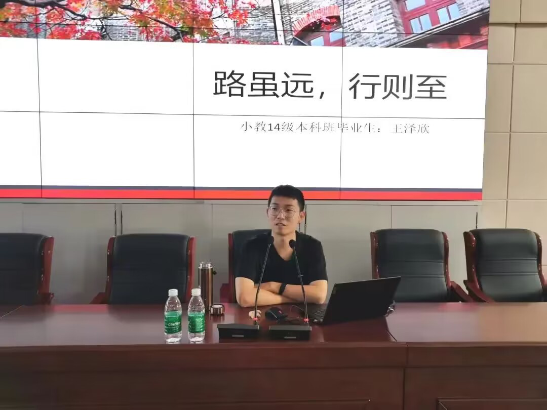 为进一步提升人才培养质量,服务学生未来发展,充分发挥优秀往届毕业生的榜样示范作用,初等教育系于6月6日下午邀请2014级本科毕业生王泽欣回校为初等教育系2017级和2018级本科学生做了《路虽远,行则至》的励志报告。