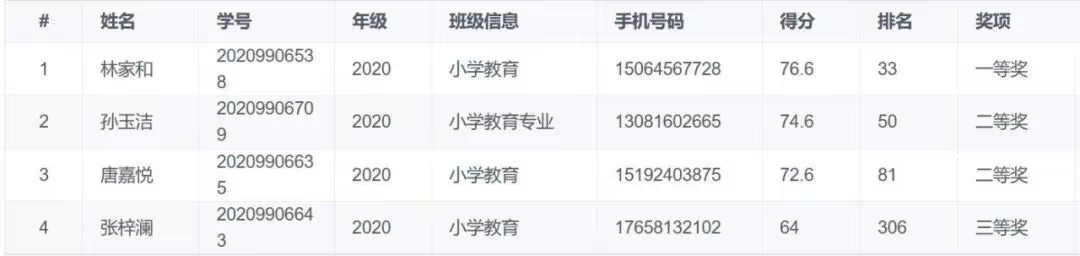 在学校各系的精心组织下,17名学子在省赛中获奖,其中林家和等3位同学获特等奖,张梓澜等2位同学获一等奖,王惠莹等3位同学获二等奖,原玮怿等9位同学三等奖。更有4位学子经过激烈角逐,最终突破重围,在国赛中获奖!林家和同学夺得国赛一等奖,孙玉洁、唐嘉悦同学斩获国赛二等奖,张梓澜同学获得国赛三等奖。具体获奖名单如下:
