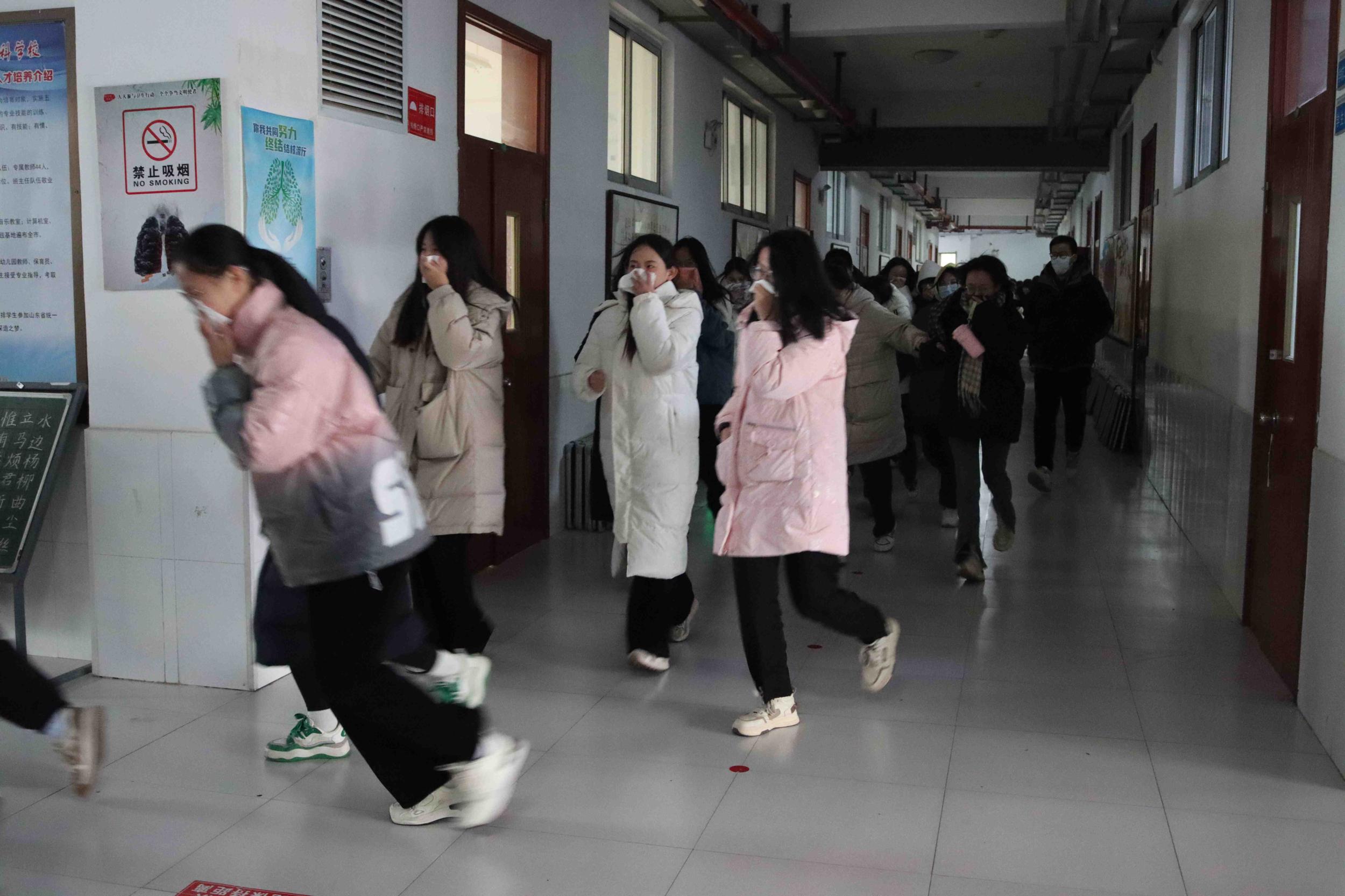 演练开始前,安全保卫处和学前教育二系精心设计了演练方案,对各班疏散的路线、每层楼梯口值班老师和演练指挥机构各组人员的职责作了明确的规定。各班主任利用班会时间让同学们熟悉疏散路线,学习疏散流程和动作要领,强调各项安全问题等。随着一阵急促的警报声响彻教学A楼,演练正式开始。各组人员按规定到达指定位置,各楼层负责老师提前到达指定岗位,指导楼内学生快速疏散。各班班主任迅速维持秩序并带领学生捂住口鼻,按照疏散要求沿指定楼梯口快速前进,有序撤离到指定的安全区域。随即,各班清点人数,层层上报。整个演练过程井然有序,有条不紊。
