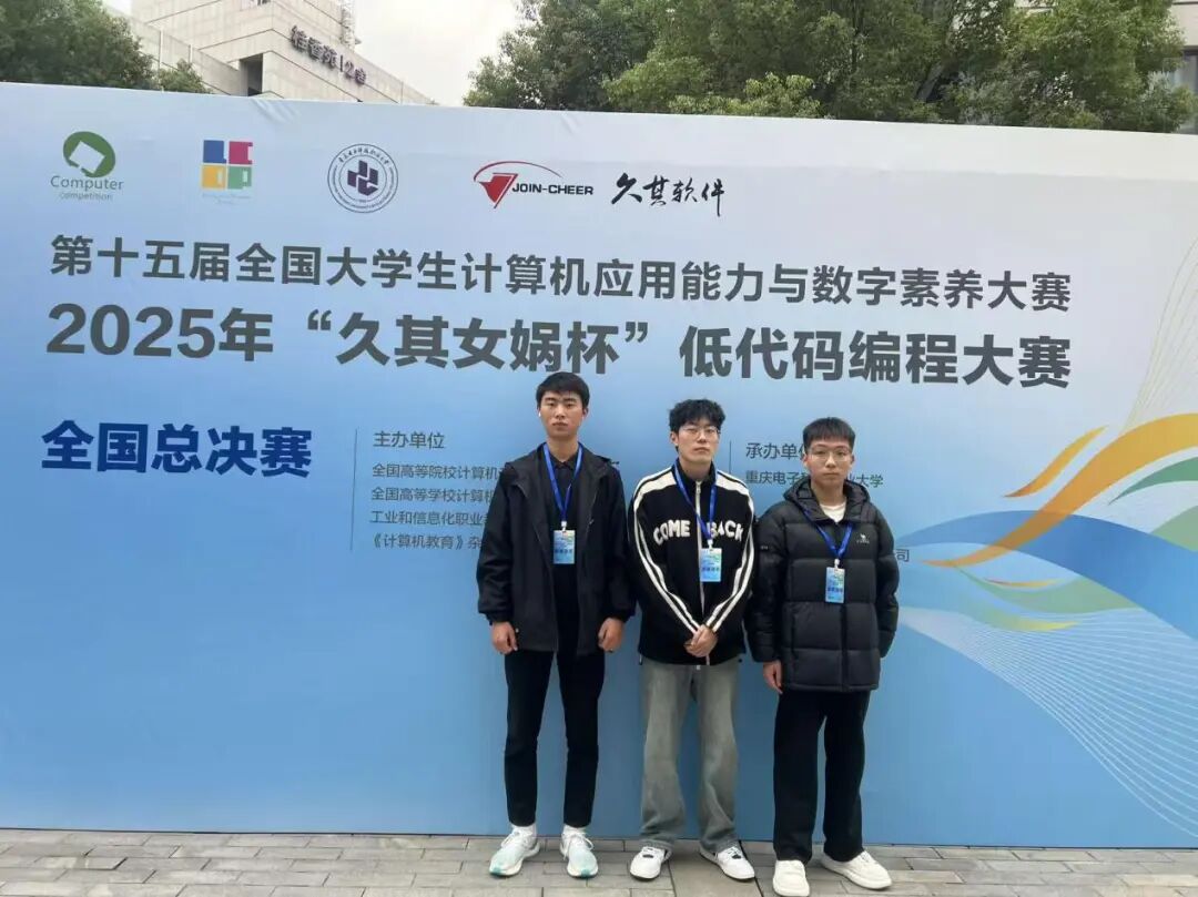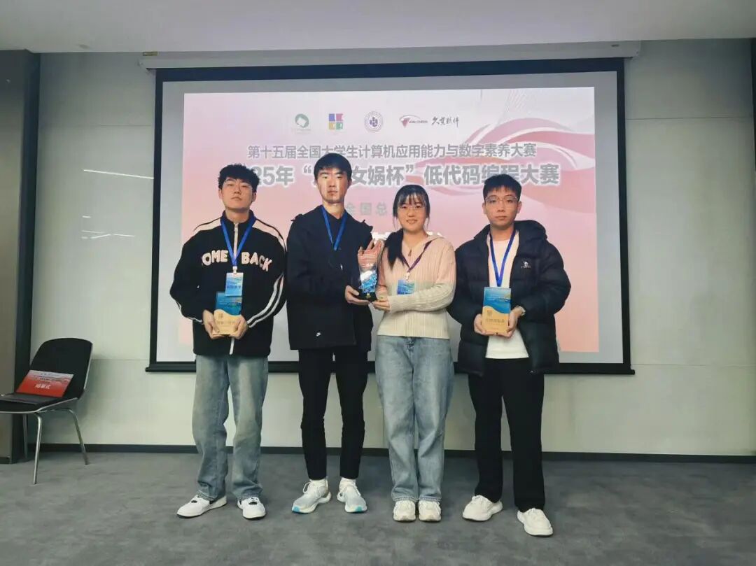 近日,第十五届全国大学生计算机应用能力与数字素养大赛“久其女娲杯”低代码编程赛道全国总决赛圆满落幕。我校信息技术系张腾飞、张兴昂、唐明轩三名同学组成的团队,在来自全国12个省(市)、26所高校的35支队伍中表现突出,获全国总决赛二等奖一项、团体三等奖一项,学校获“优秀组织奖”。