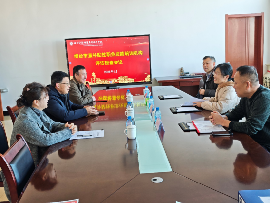 1月20日,烟台市公共就业中心培训科宋彦彦科长一行三人莅临学校进行“2025年度烟台市直开展补贴性职业技能培训机构”评估工作,学校党委委员、副校长崔振宁同志及继续教育处、实验实训中心、相关系部人员全程参与。