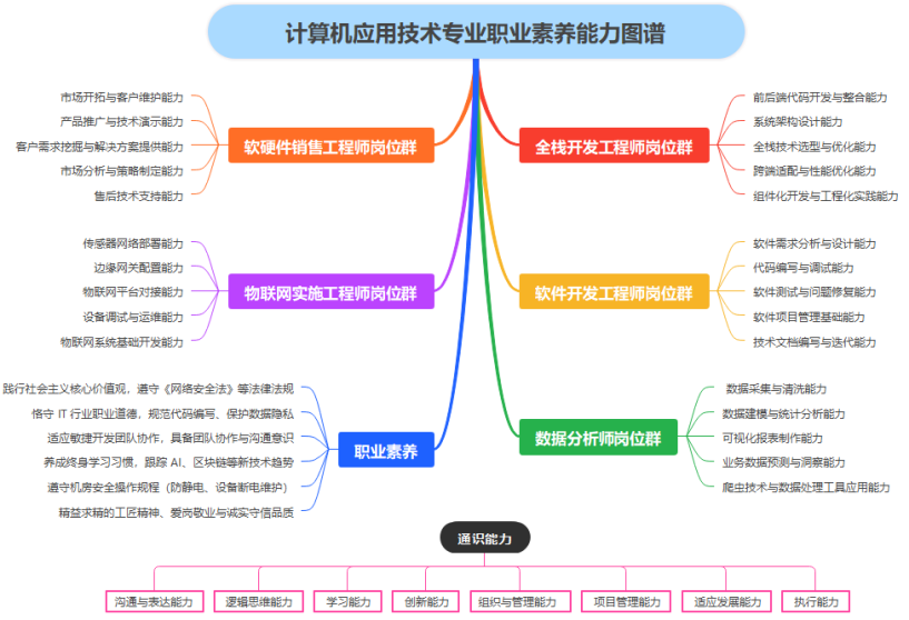 计算机应用技术专业课程体系采用“基础+方向+实践”三位一体的分层递进模式,形成“通识基础→学科核心→专业方向→综合实践”的有机整体。