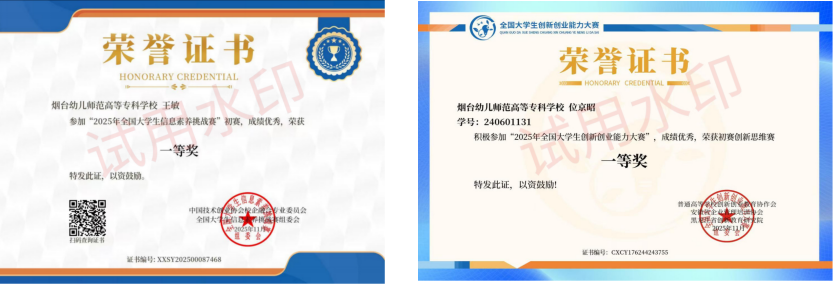 学生在全国大学生计算机应用能力与数字素养大赛、全国大学生信息素养大赛、大学生 AI 应用与创新竞赛、全国大学生创新创业能力大赛等获得奖项。