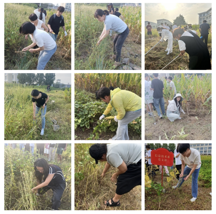 为进一步发挥党组织战斗堡垒作用和党员先锋模范作用,深化劳动育人实践,2025年9月8日下午,信息技术系组织全体党员、班主任及24级学生前往劳动实践基地“先锋园”,开展了一次以“清除暑期杂草,焕新实践阵地”为主题的党日劳动实践活动。