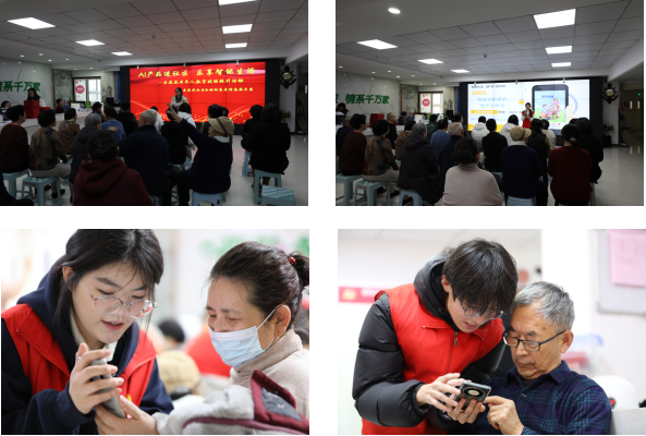 信息技术系于冠英在启动仪式上表示,此次活动是学校科协落实"科技惠民"的重要实践,通过"青银结对"方式实现科技服务与代际关怀的深度融合。志愿者们运用专业所长,以"理论讲解+实操指导"双轨模式,系统演示了DeepSeek智能搜索、豆包AI创作等工具在健康咨询、生活服务、文化娱乐等场景的应用。通过"你问我答""手把手教"等互动环节,老人们现场体验了语音搜索、智能歌单生成等实用功能。