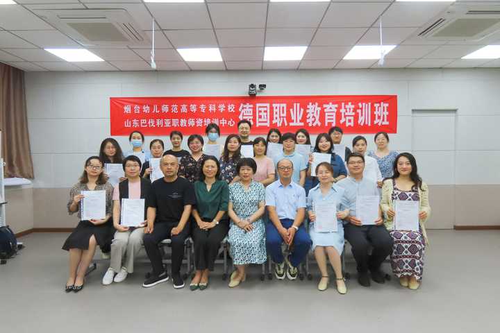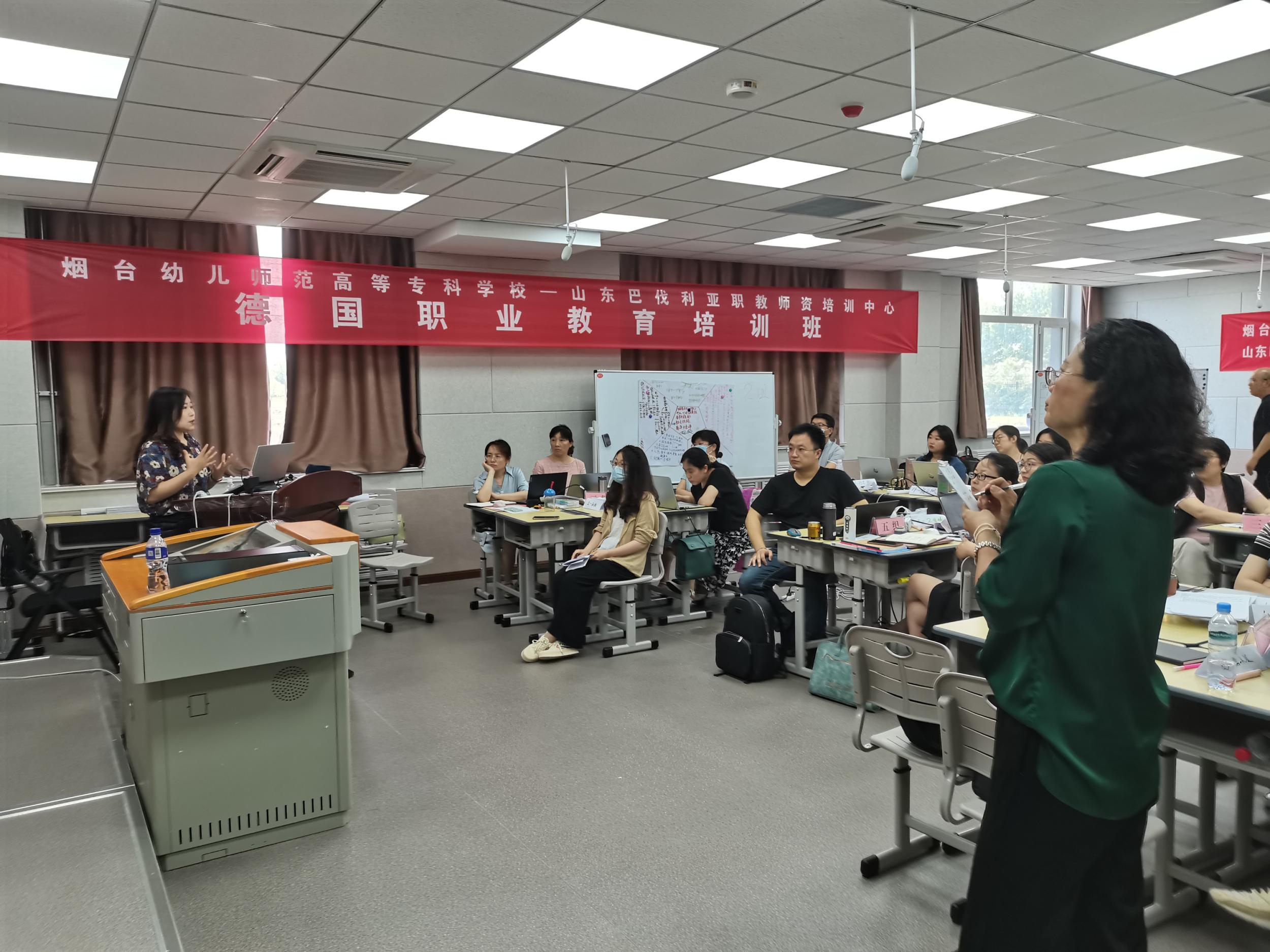 6月28日上午,学校德国职业教育教学法培训班圆满结束,结业仪式在教师培训中心108室进行。经过为期7天的学习,22位参训教师能够运用德国行动导向授课模式和所学教学方法独立完成一个本专业的教学设计。经过小组讨论、优化,选取具有代表性的教学设计作为典型案例进行了结业汇报。汉斯赛德尔基金会特聘专家潍柴职业大学刘新子教授对结业汇报进行点评。汉斯.赛德尔基金会山东巴伐利亚职教师资培训中心德方项目负责人袁东升主任、学校副校长宋修波、继续教育部负责人宋曙光参加结业仪式。