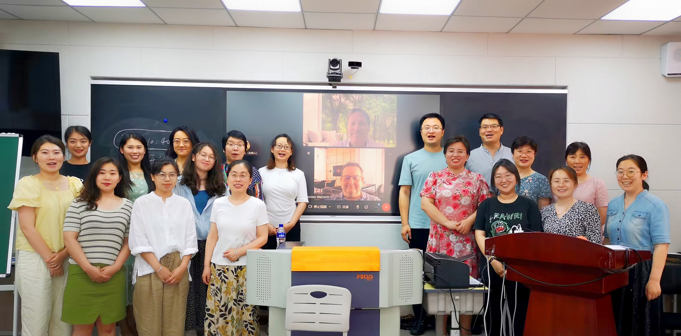 本次培训主要内容是德国职业教育理念以及行为导向的德国职业教育教学法。培训采取“德国专家线上、国内专家线下、助教现场翻译”的授课和交流方式。培训过程中,德国黑森州教师培训中心副主任Weinerth先生(线上)、德国黑森州教师培训中心讲师Kremer先生 (线上)和刘新子教授(现场)深入浅出地介绍了德国职业教育的成功经验,又把德国行为导向的教学法贯穿培训全过程,袁东升主任全程翻译。
