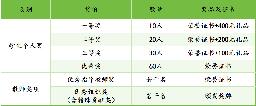 初赛:学校根据参与情况,参赛的结果,评选出初赛一等奖、二等奖、三等奖。