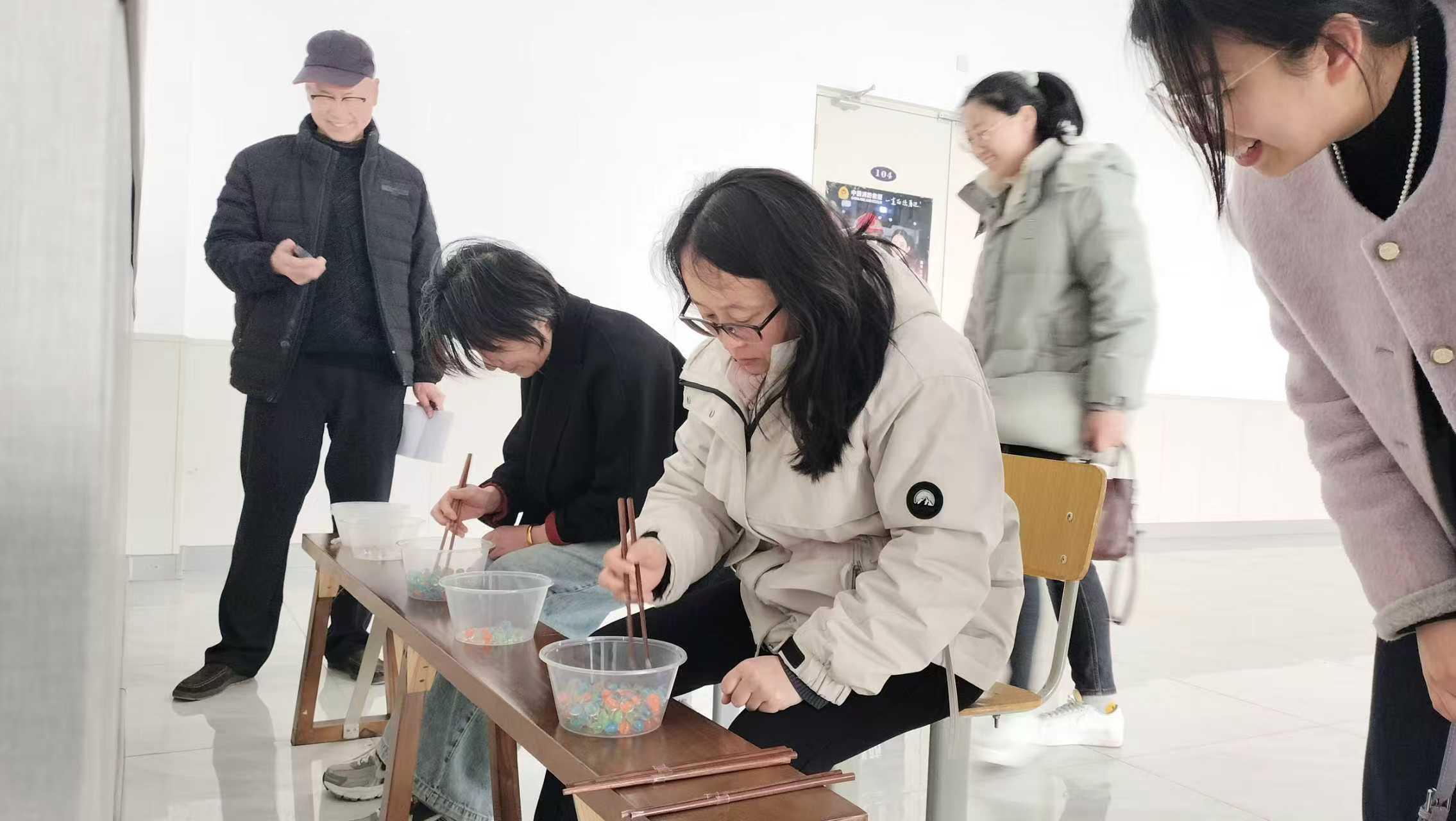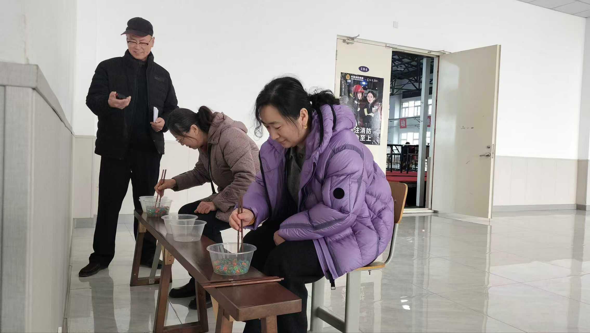 活动现场一片欢声笑语,热闹非凡。趣味夹玻璃球比赛中,女教职工们屏气凝神、巧手轻夹,小小的玻璃球在筷子间来回穿梭,大家各显神通,有的动作娴熟、行云流水,有的稳中求进、步步为营,一旁的观赛老师不时为选手们加油鼓劲,掌声与欢笑声此起彼伏。全体女教职工全身心投入其中,忘却了工作的忙碌,沉浸在趣味竞技的快乐之中,赛场之上,既有你追我赶的小小比拼,更有互帮互助的温暖情谊,每一个身影都洋溢着自信与活力,每一张笑脸都绽放着巾帼独有的芳华。